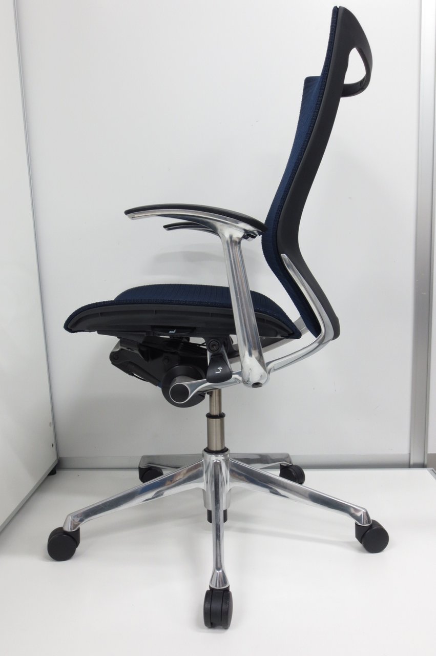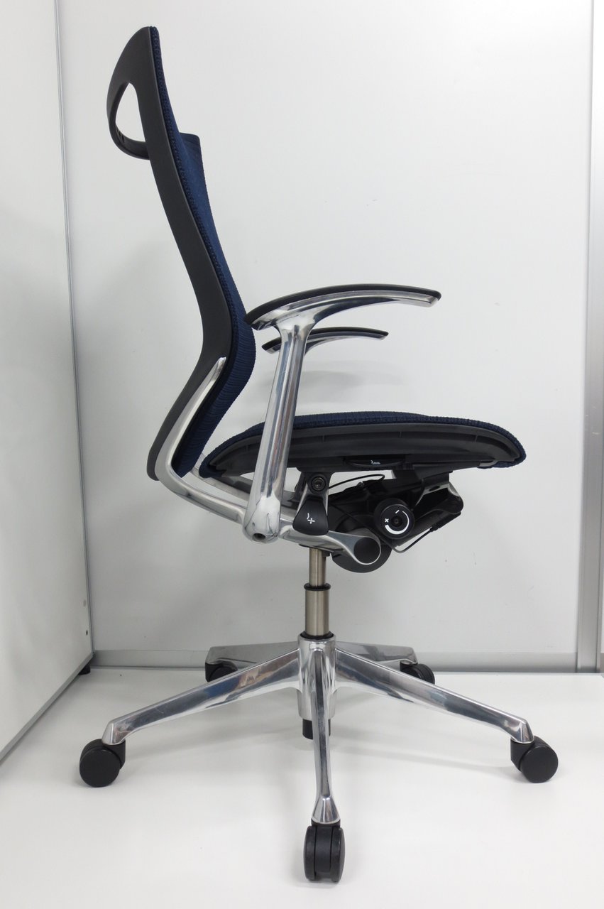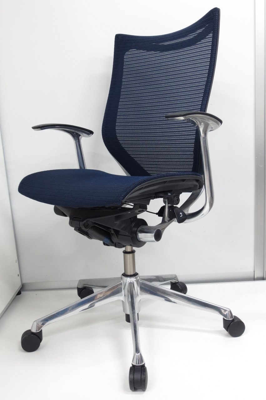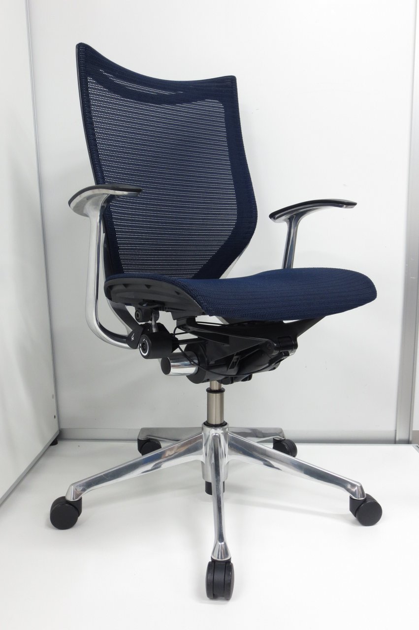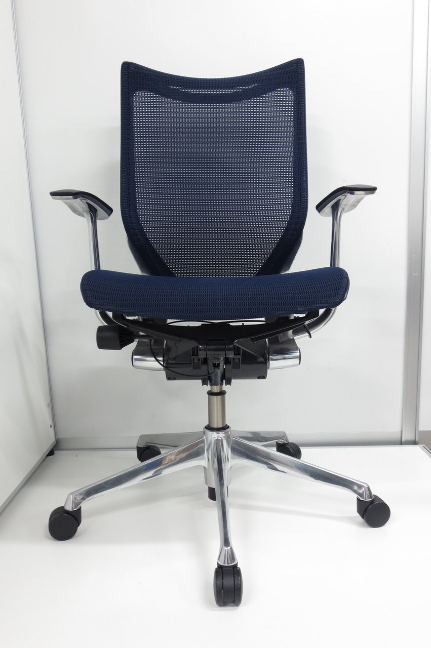 【在庫入替セール品】【オフィスの執務室、会議室におすすめ!】■オカムラ(okamura)製 バロン(Baron)チェア ローバック 肘無し ■背面メッシュ ■色:ダークブルー【国産メッシュチェアの代表格!】