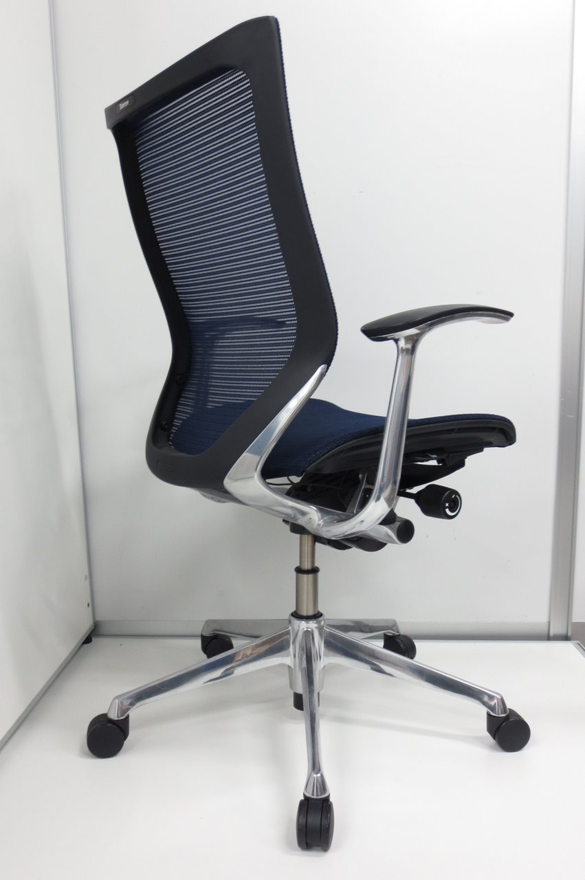 【オフィスの執務室、会議室におすすめ!】■オカムラ(okamura)製 バロン(Baron)チェア ローバック 肘無し ■背面メッシュ ■ハンガー付 ■色:ネイビーブルー×ブラックシェル【国産メッシュチェアの代表格!】