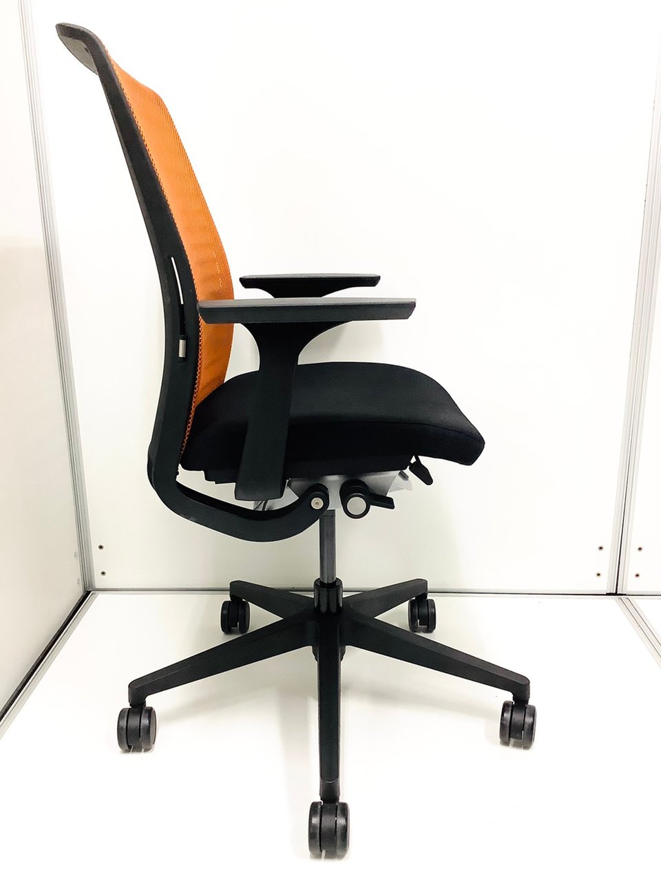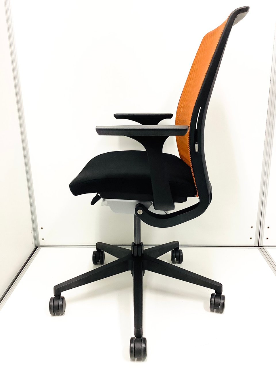 【関東倉庫在庫品】【長時間作業を快適にするフィット感!】【在庫入替セール品】■スチールケース製 シンク 肘付きハイバックチェア ■背:オレンジ・座面:ブラック【弊社使用欄:A01020599】【ECBMC】