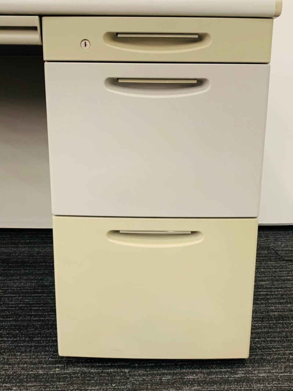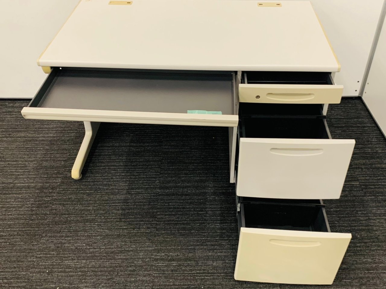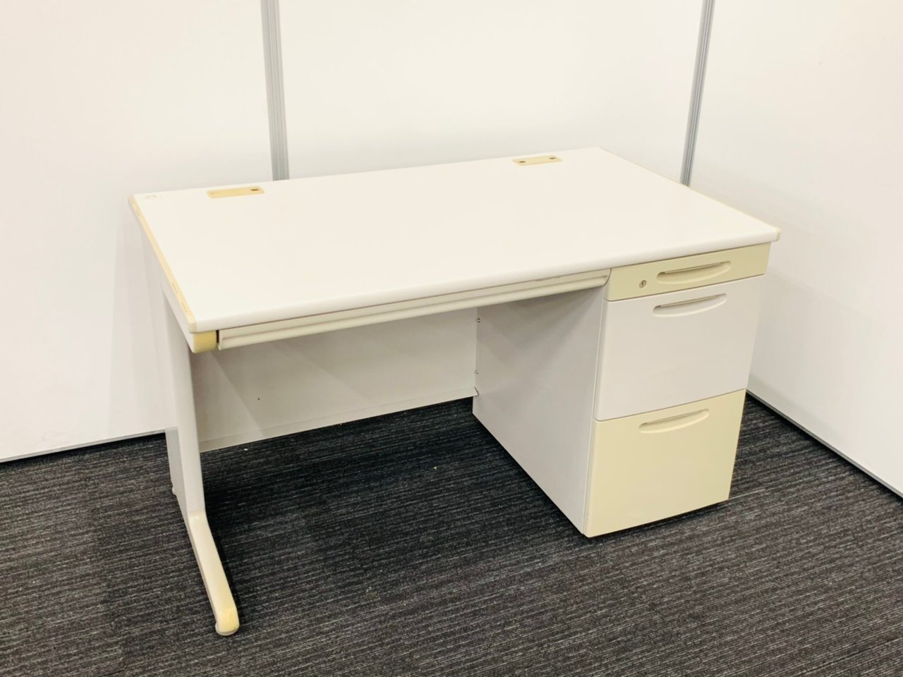 【オカムラの超定番シリーズ!袖一体型で書類をたっぷり収納可能!】■オカムラ (okamura)製 SD-Vシリーズ 片袖机 W1200mm×D700mm ■シリンダー錠 ■ライトグレー ※日焼け有【弊社使用欄:A01034077】
