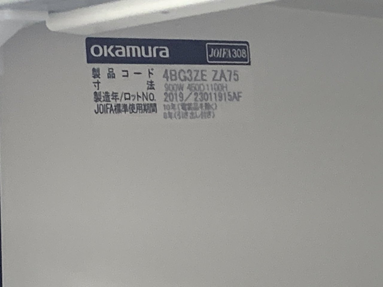 オカムラ レクトライン 3段ラテラル書庫 ホワイト天板 シリンダー錠 鍵付き ※取っ手部分に若干日焼けあり