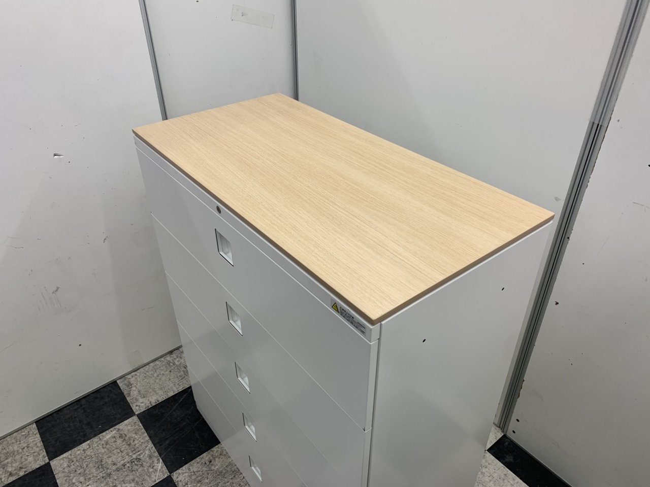木目色の天板付きでオフィスに設置しても見栄えが良い収納庫です!