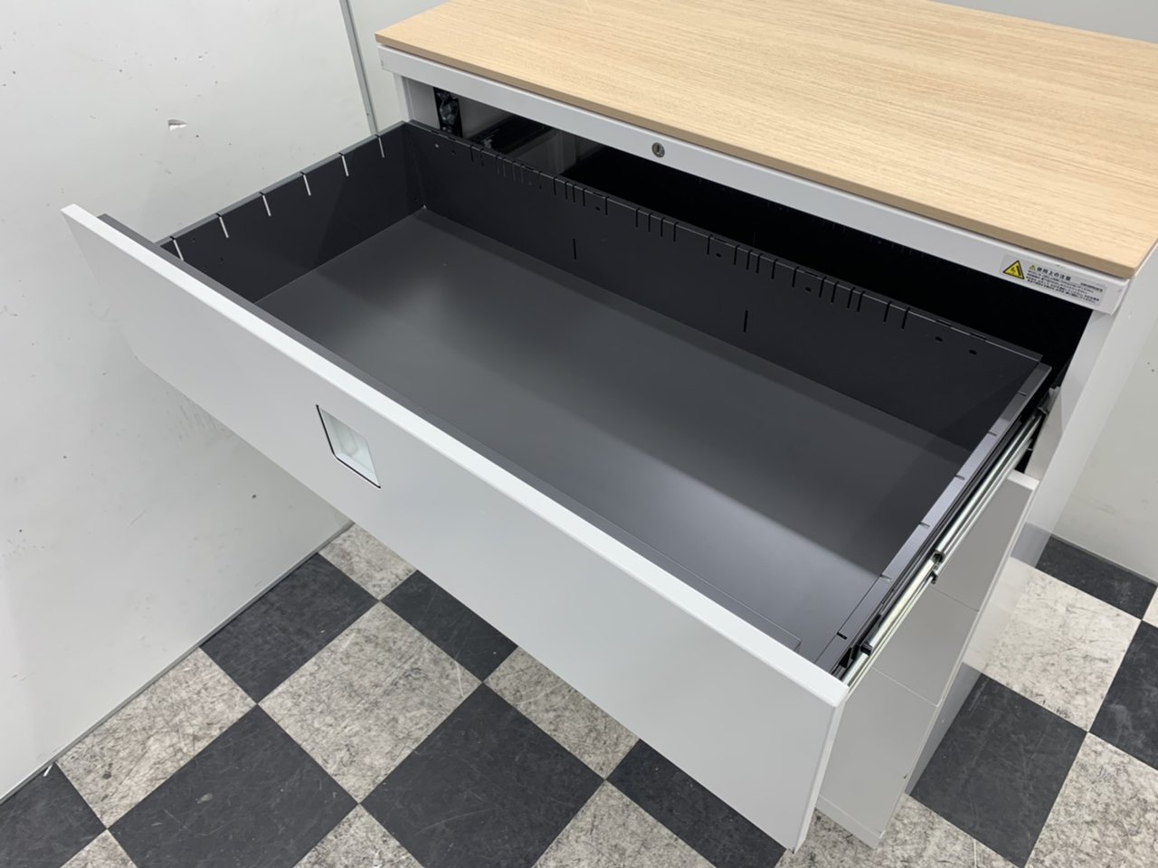【使いやすさで選ぶならコレ!大容量の三段キャビネット】■オカムラ(Okamura)製 レクトラインシリーズ(Rectline) 3段ラテラル書庫 ローキャビネット ■天板付き ■シリンダー錠【IB】