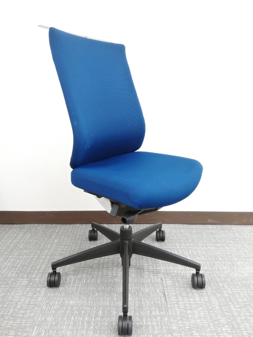 【細やかな姿勢変化に対応する座り込み抜群のチェア!】■コクヨ製 ウィザード3 肘無ローバック ■ランバーサポート付き ■コートハンガー付き ■プルシアンブルー × ブラックシェル