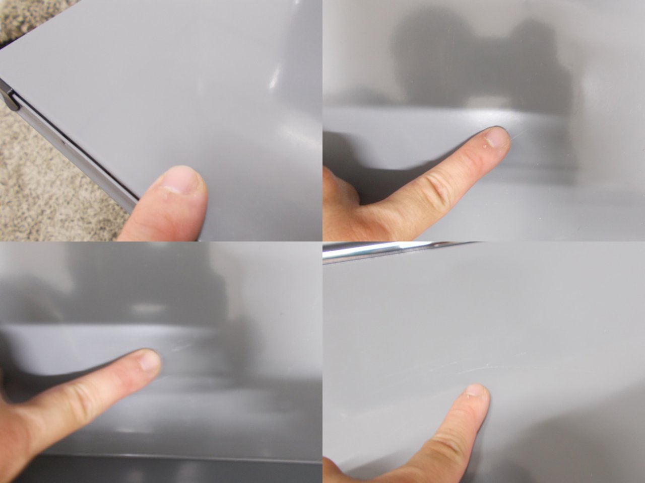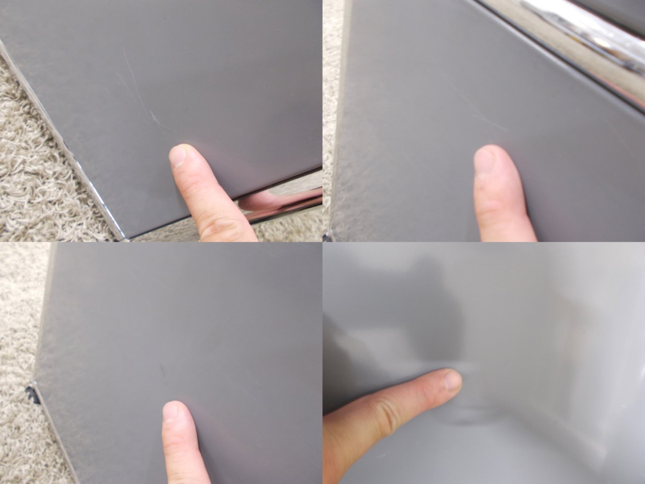 - 目立つ箇所あり傷・凹みが多数、深い傷・凹みが一部ある。(例、天板、正面、背部、サイド部分にある。)