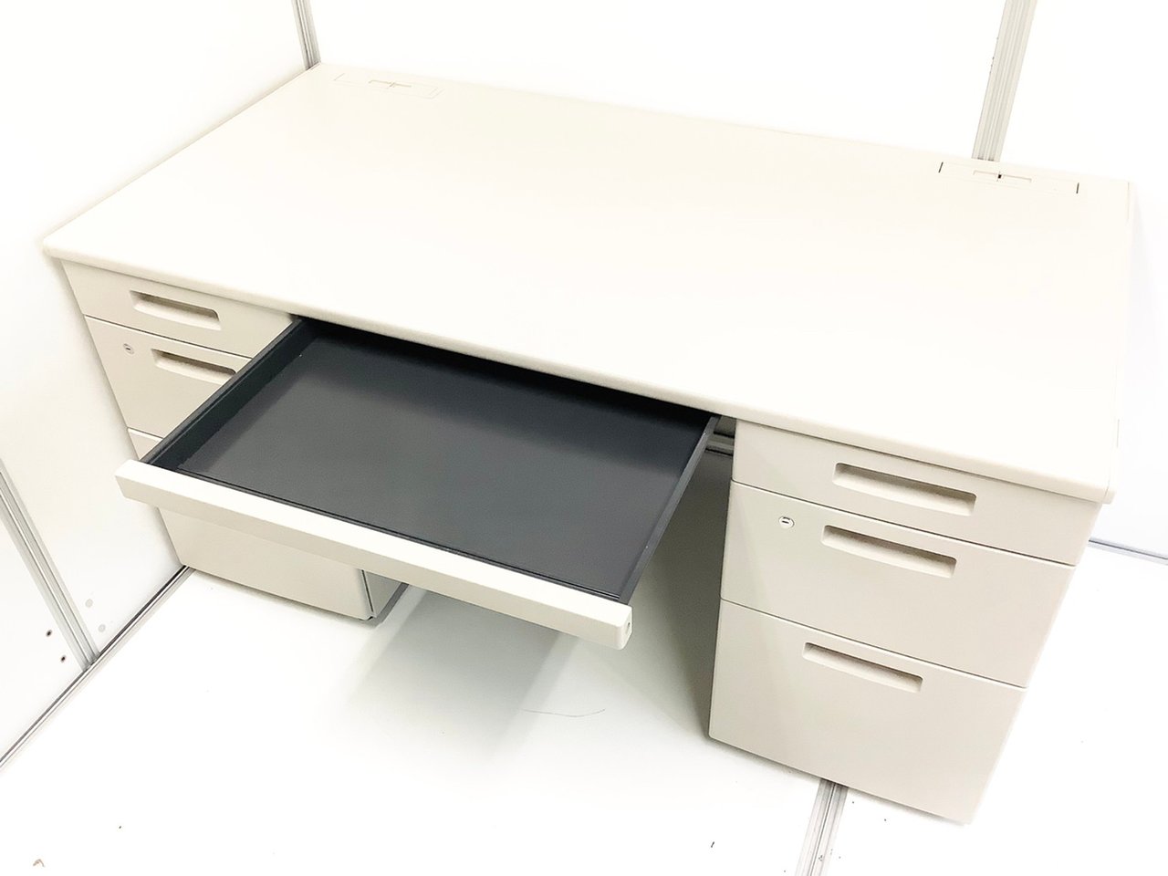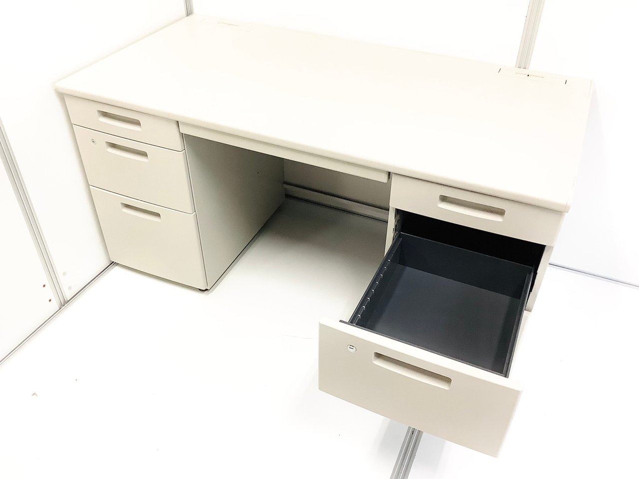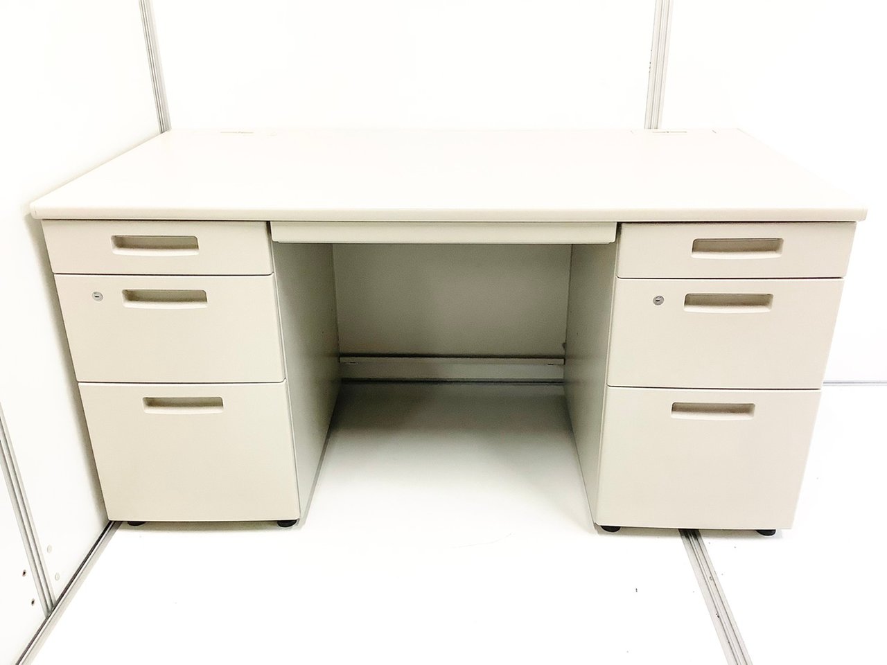 ★コクヨ製 BS ニューグレー W1400xD700xH700サイズ シリンダー スタンダードなデザインで高品質! 収納力を備えたスチールデスク! 上長様用の席にもおススメです! W1400両袖机!!