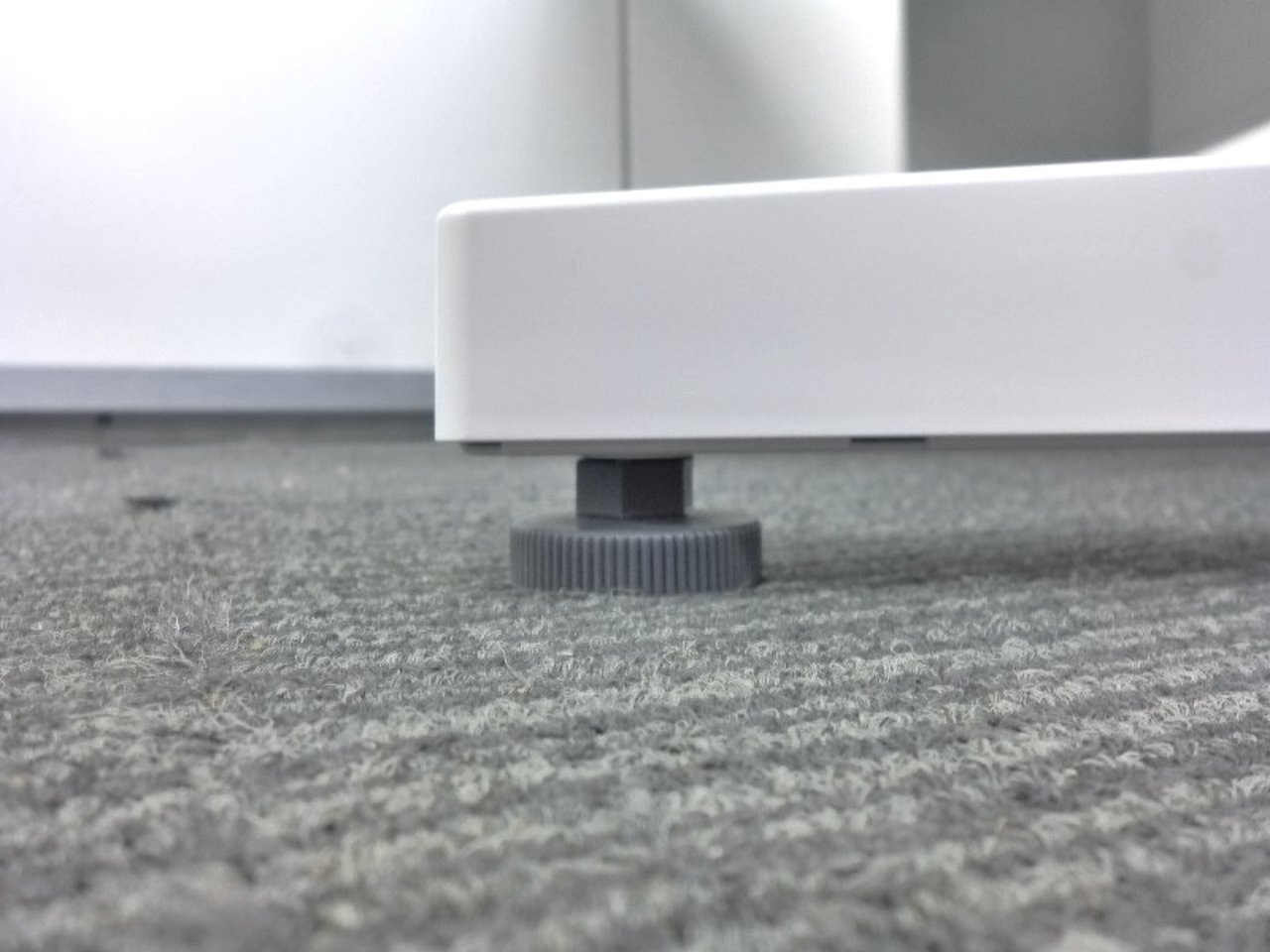 - 地震時、センター引出しが飛び出さないよう、ラッチ機構を装備。脚はデスクの横ズレを軽減させる設計になっています。