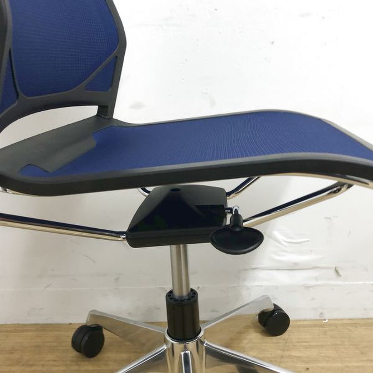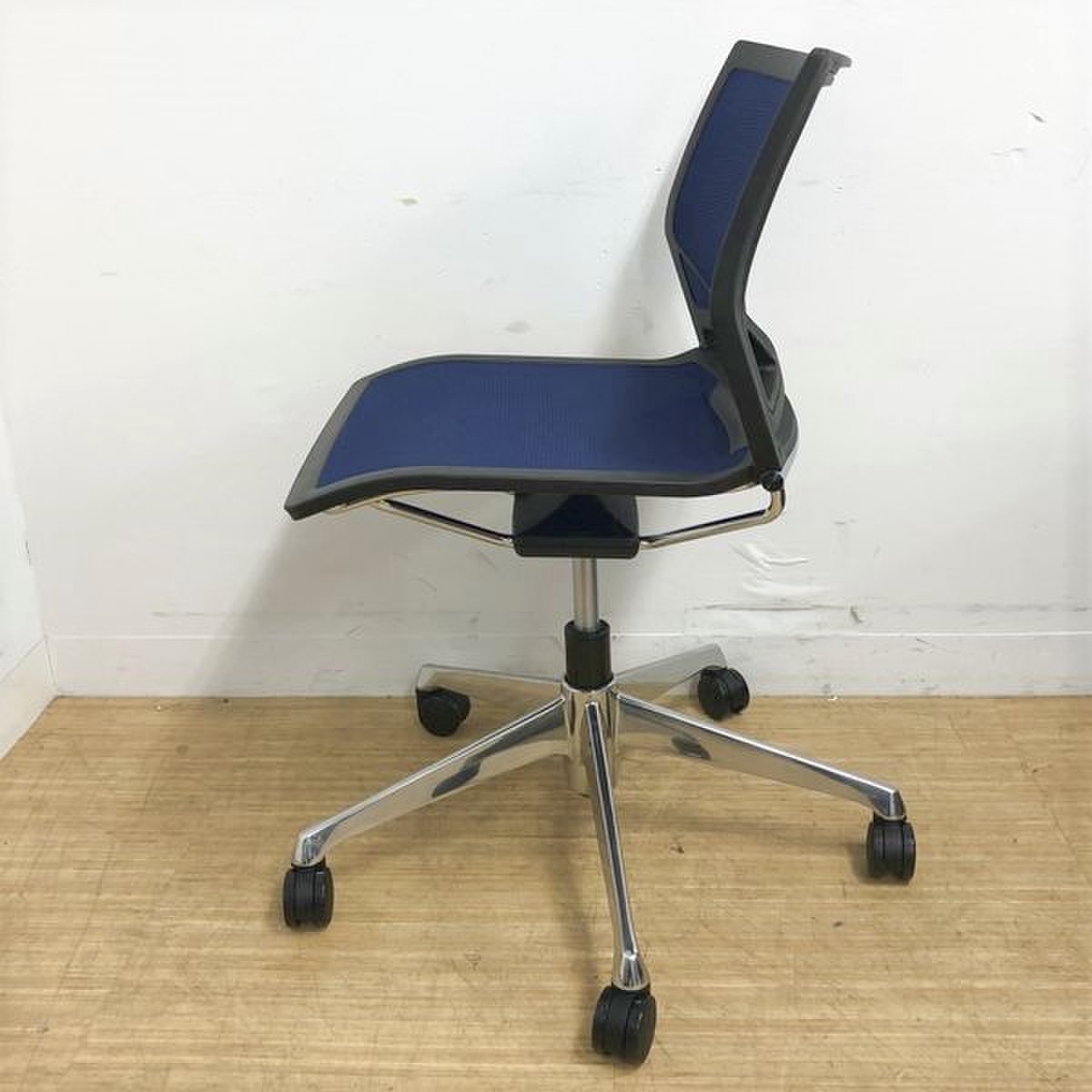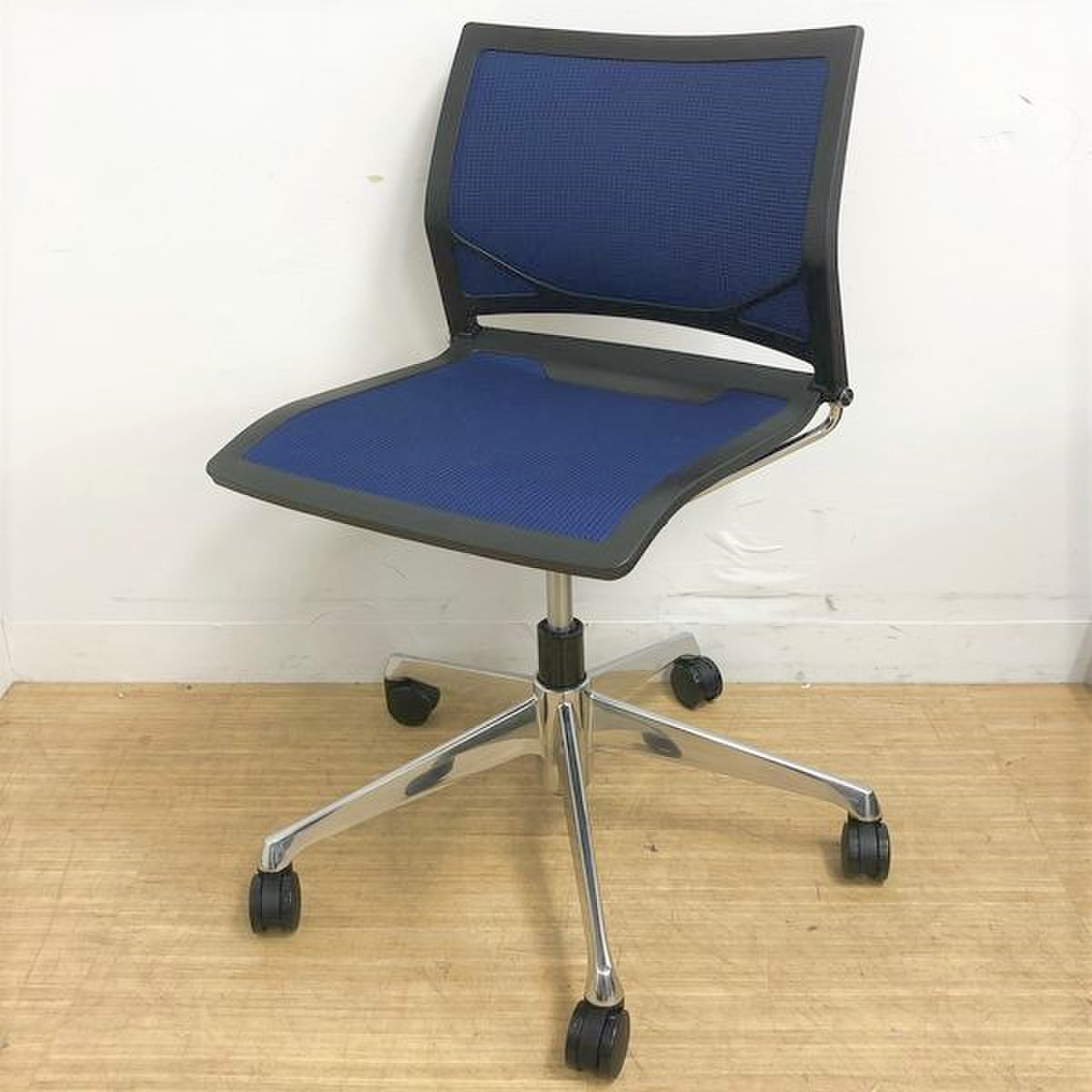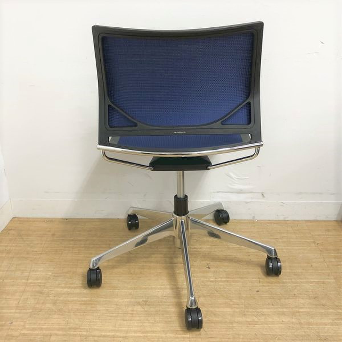 GOOD DESIGN★メッシュがオシャレなミーティングチェア オカムラ ツァルト ミディアムブルー 5本脚 上下昇降付き 【2019年製】- 名古屋千種店