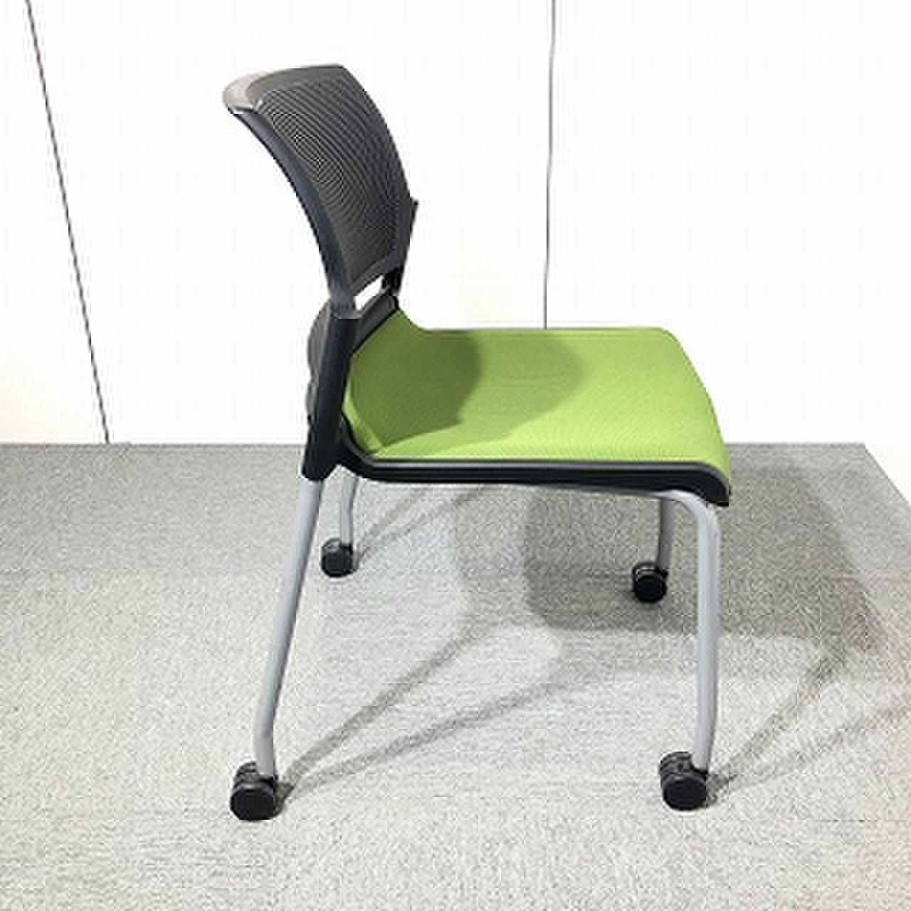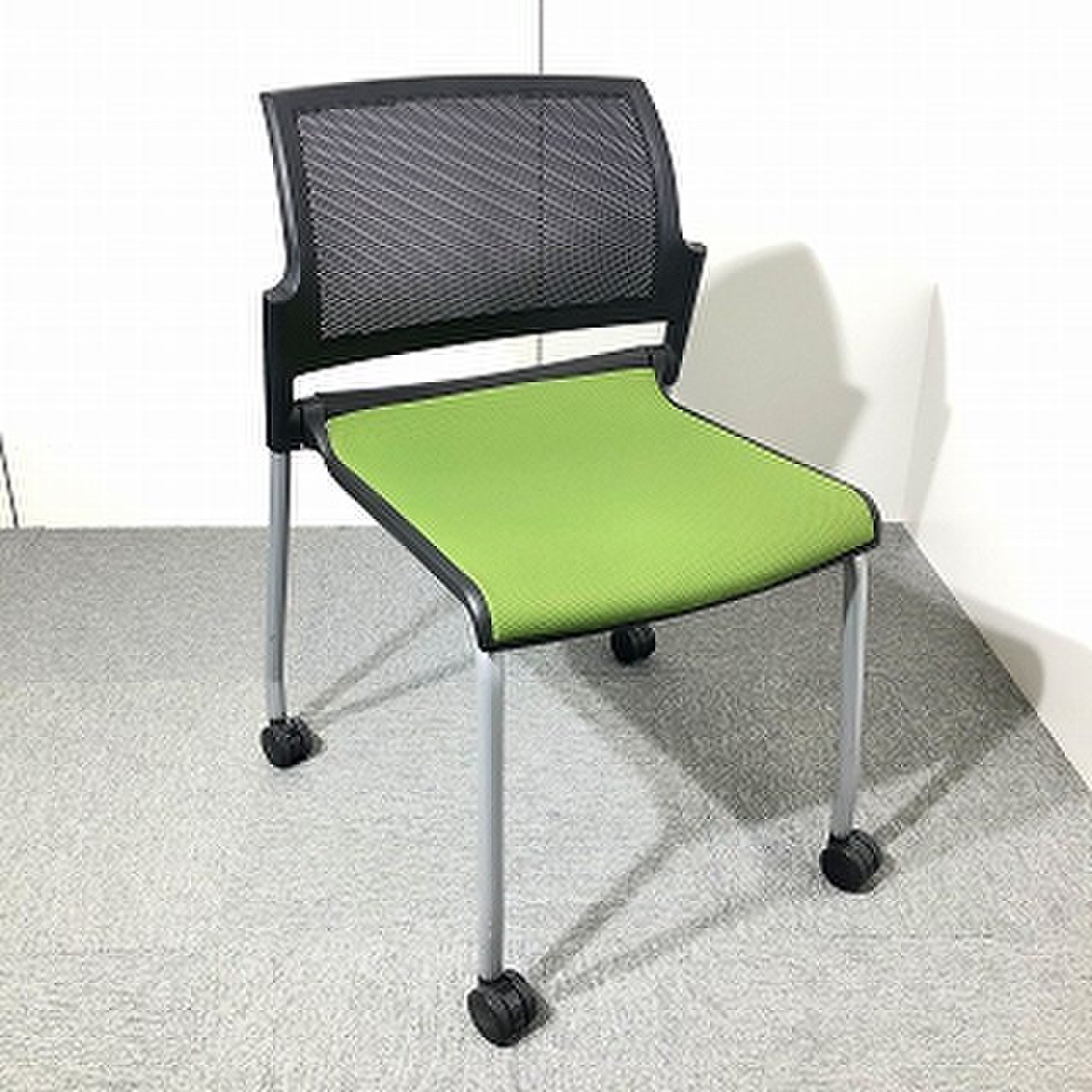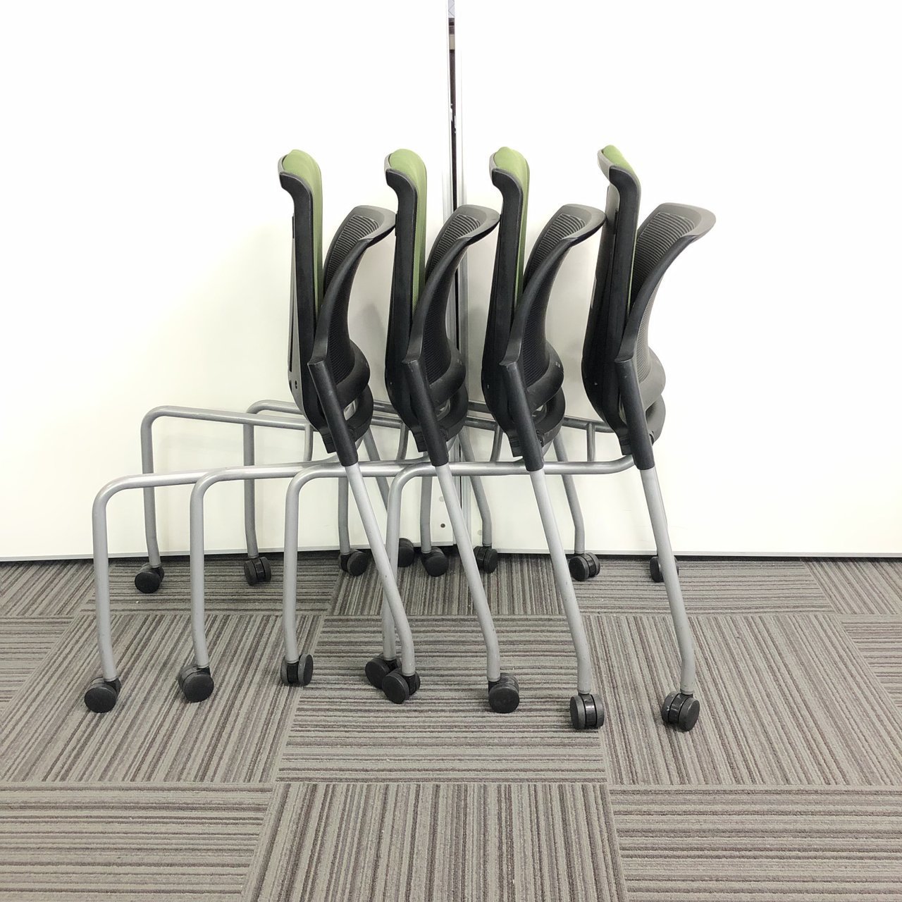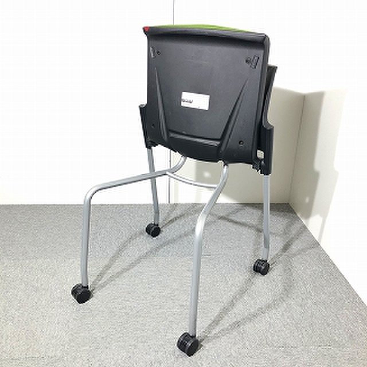 【4脚セット価格】内田洋行 スタッキングチェア グリーン 【重ねて収納】【座面を畳んで収納】- 京都東寺店