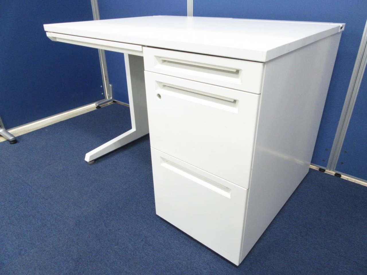 【博】オカムラの片袖机【アドバンスシリーズ/ホワイト色※鍵付き】 ※【博多店在庫品※在庫確認必要:南店でもご案内が可能です】