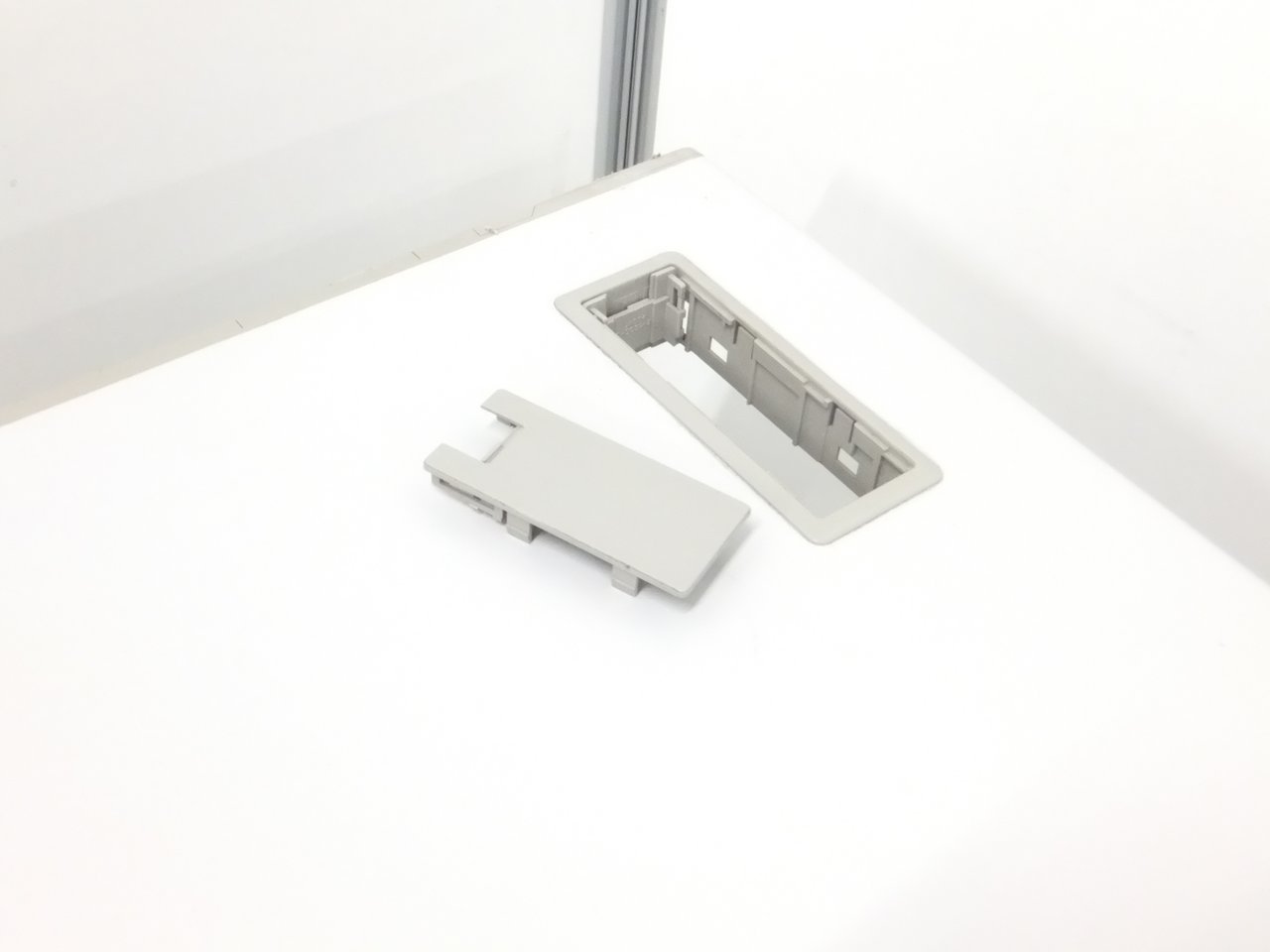 - 天板にコードホールが2ヵ所あり、レイアウト自在です。天板と幕版の間に30mmのすき間があり、対向配線も容易です。