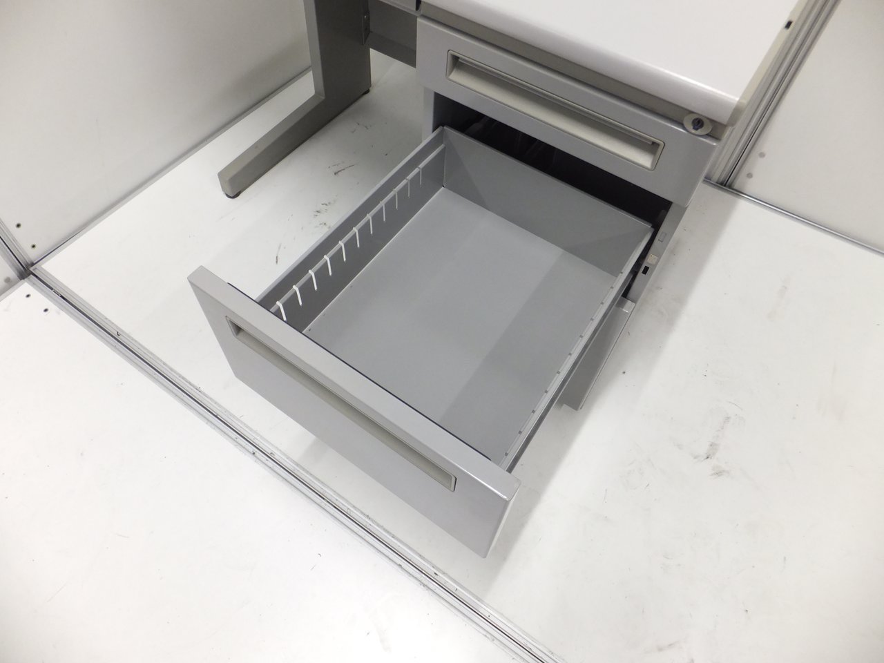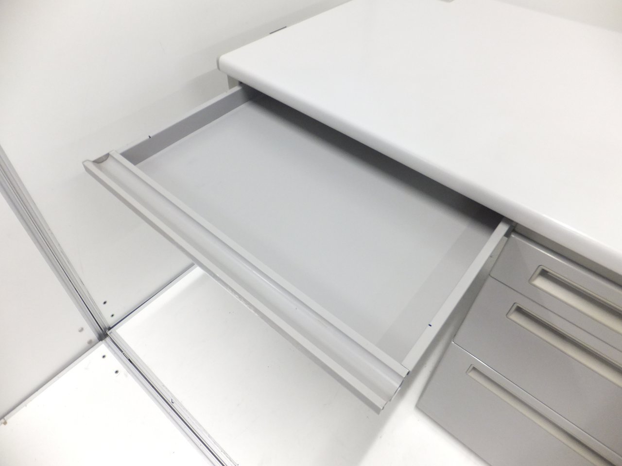 広々とした倉庫スペースに豊富な在庫がございます。オフィス家具が中古で一式そろいます!