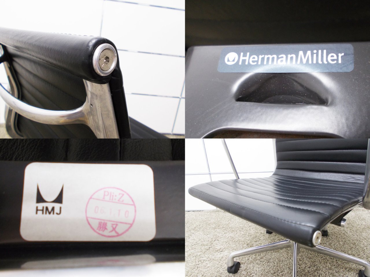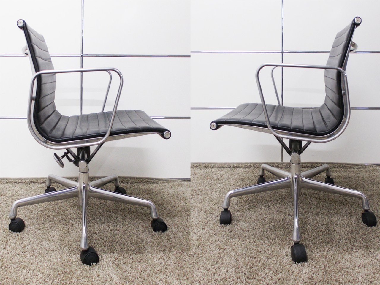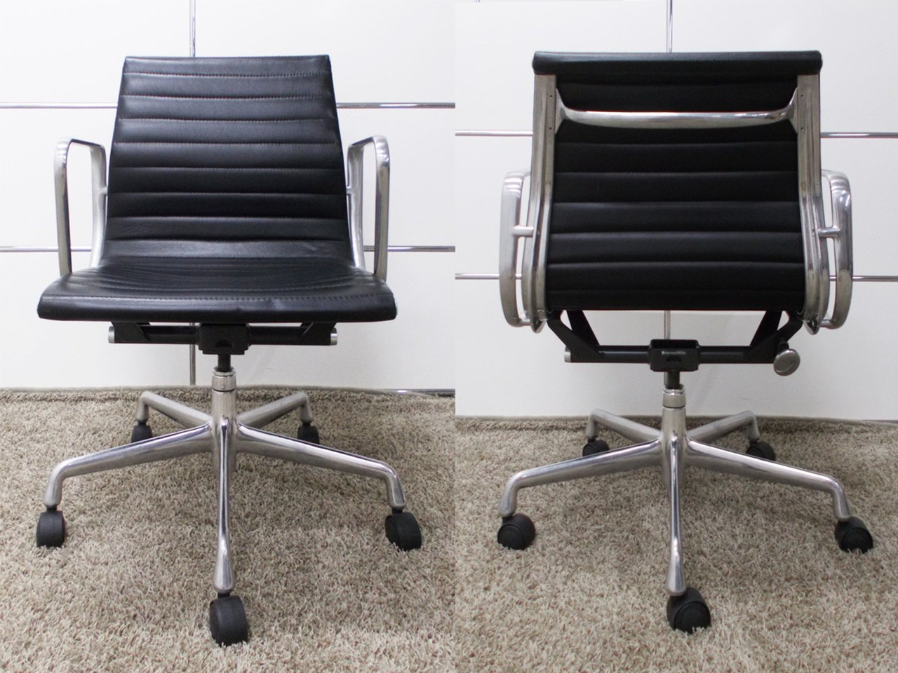 B)HermanMiller/ハーマンミラー イームズ アルミナムチェア ローバック ブラック 本革在庫がある店舗一覧