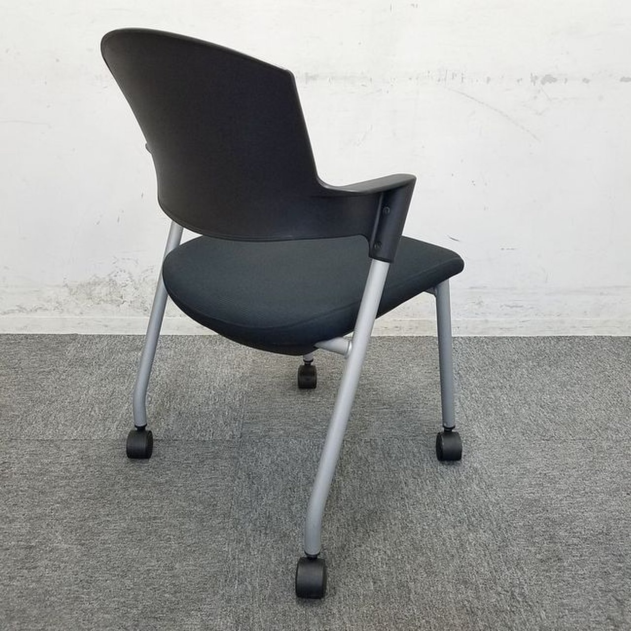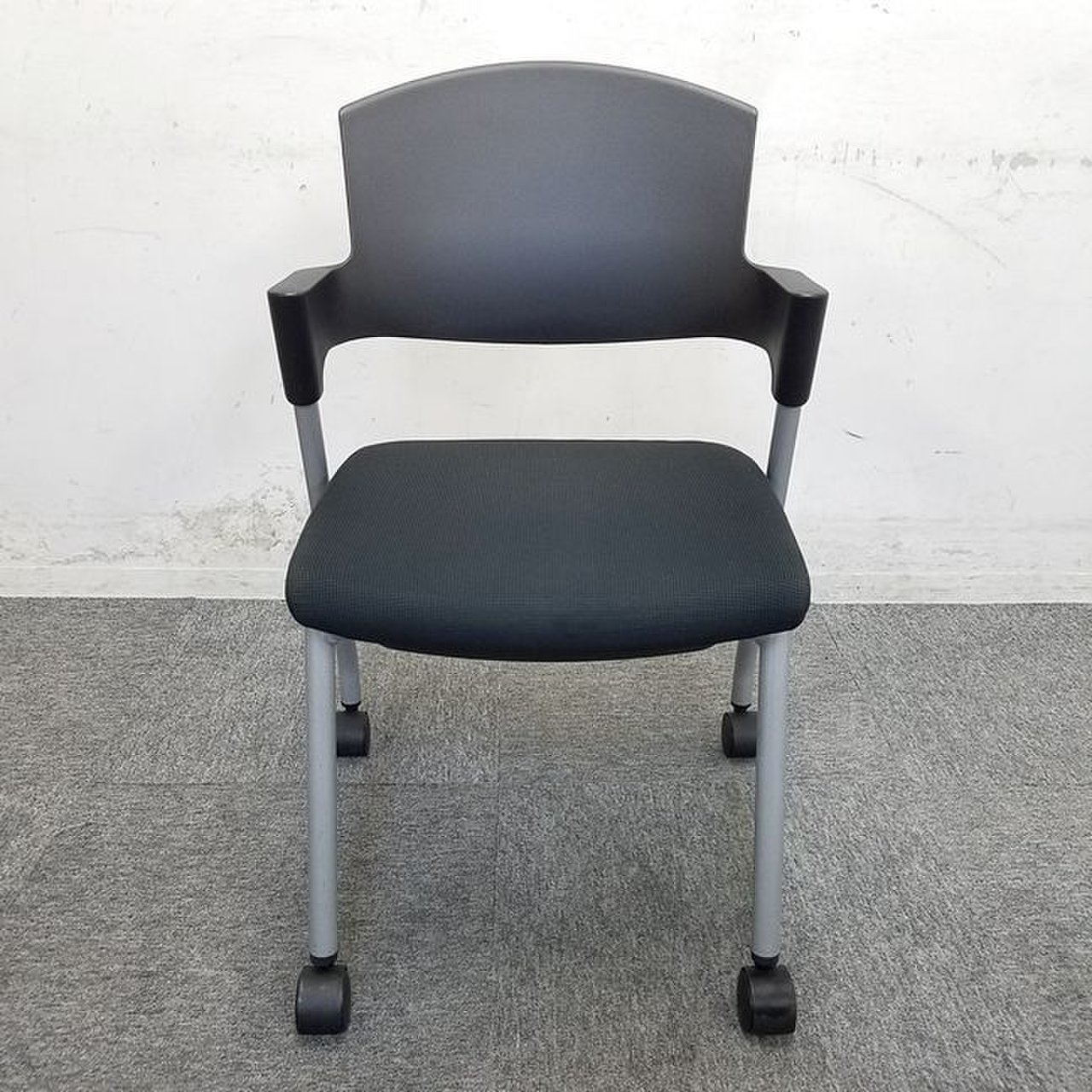 【シンプルスマートなスタッキングチェア!分厚いクッションで長時間でも快適な座り心地!】■スタッキングチェア 肘付ミーティングチェア ■固定肘 ■キャスター付 ■ブラック ■背面樹脂/コクヨ(KOKUYO/プロッティ
