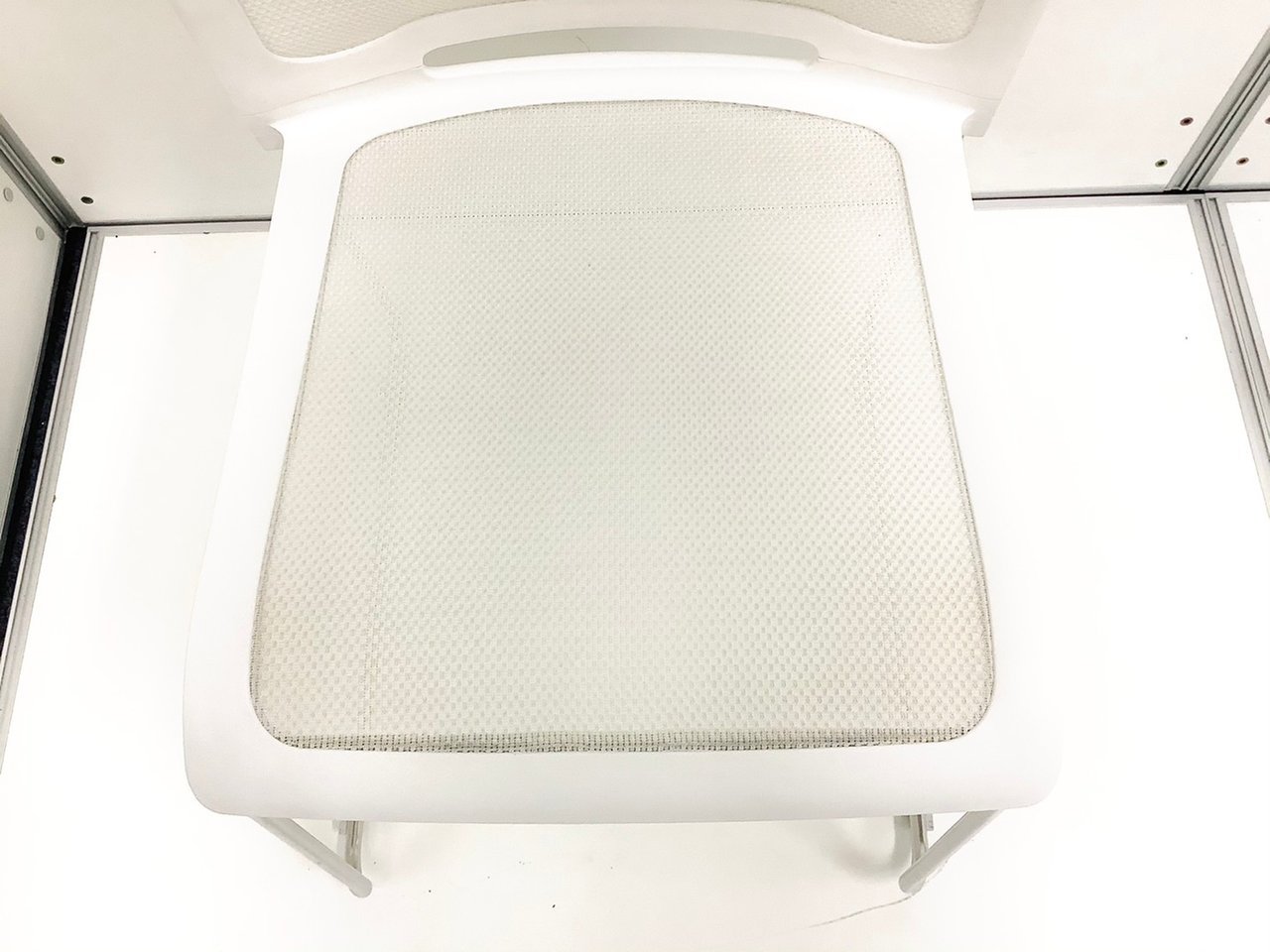 - かなり強い濃い黄ばみ・変色が商品全体にある。(例、座面・背もたれ、脚部等にある。)