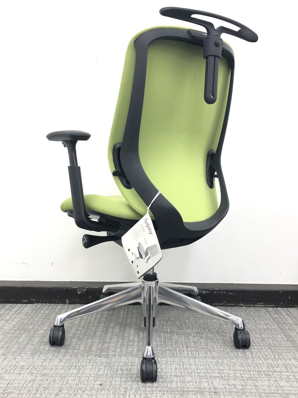 【人気のヘッドレスト付!集中作業にもオススメのワークヴェール付!】■オカムラ シルフィーチェア 可動肘付 ライムグリーン エクストラハイバック ■背のカーブを変えられる!新感覚のオフィスシーティング!【Okamrua Sylphy】★