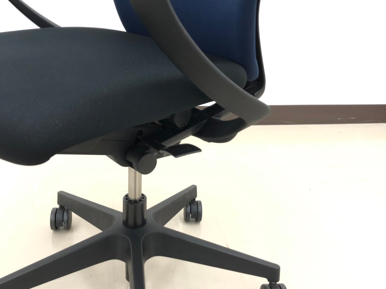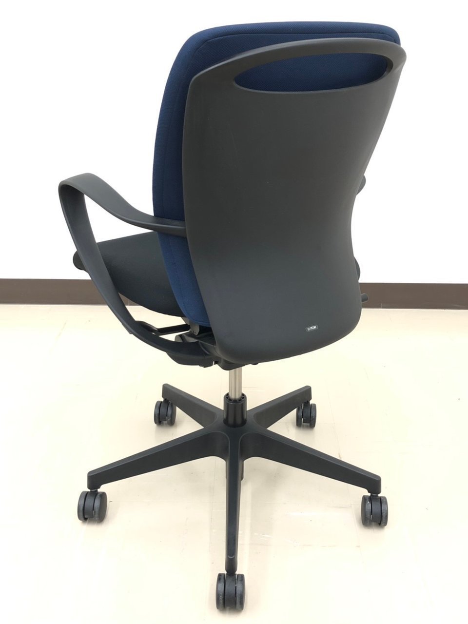 【背もたれ・座面使用感のすれあり】イトーキ製 人気高いフルゴシリーズ ブラック×ネイビーブルー 肘付きローバックチェア!!【関西倉庫在庫】