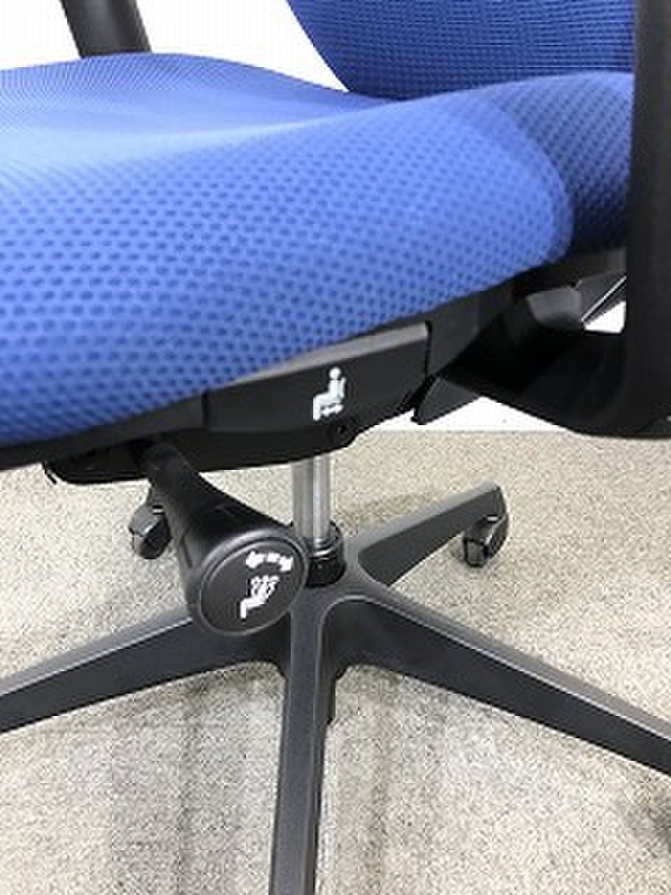 - 座面右下のダイヤル操作で、リクライニングの強弱調整が行えます。これまでのダイヤル式よりも、少ない回転数で、最弱?最強の調整が可能です。