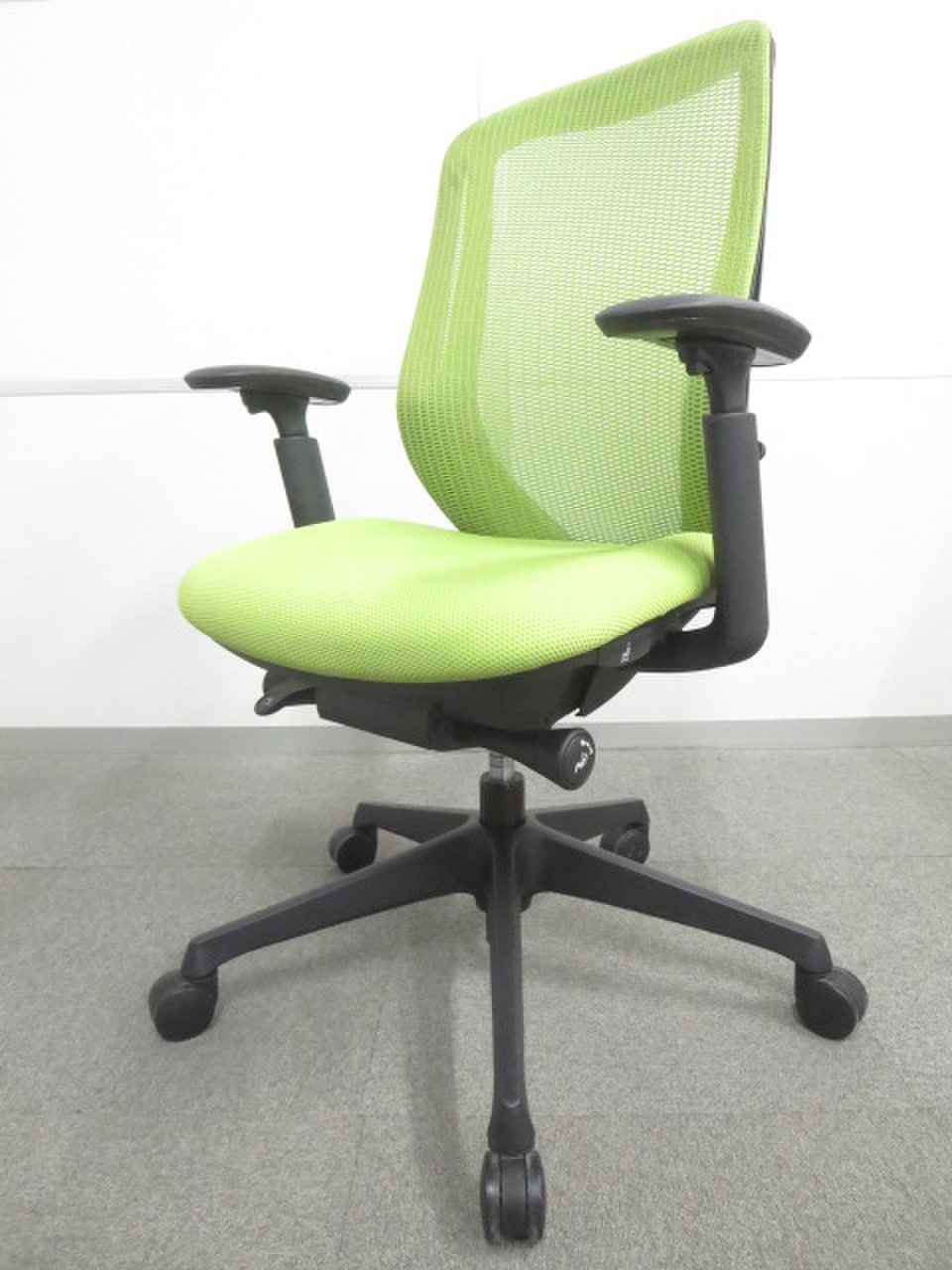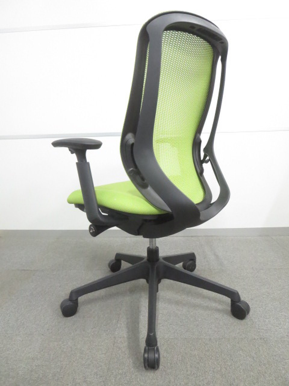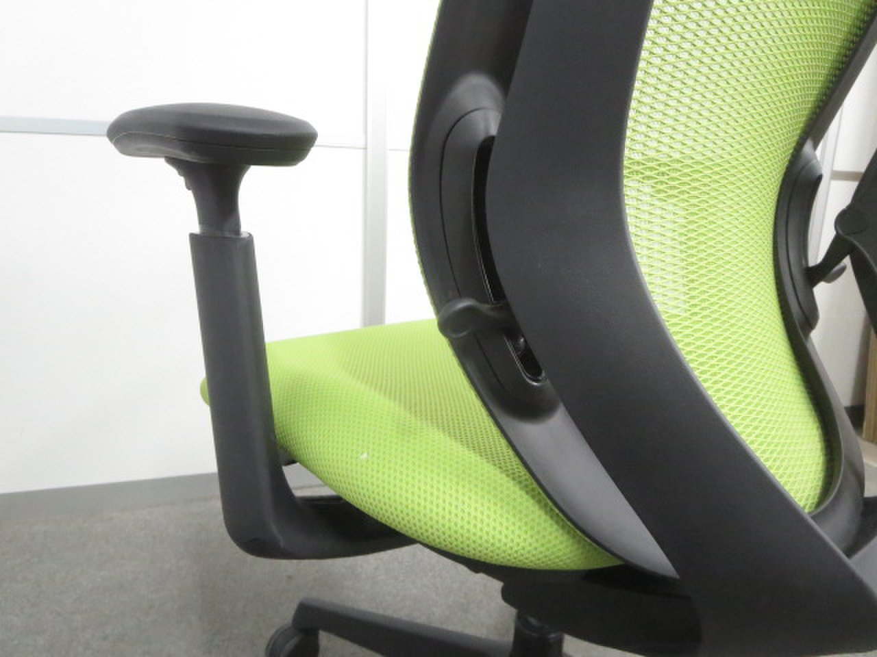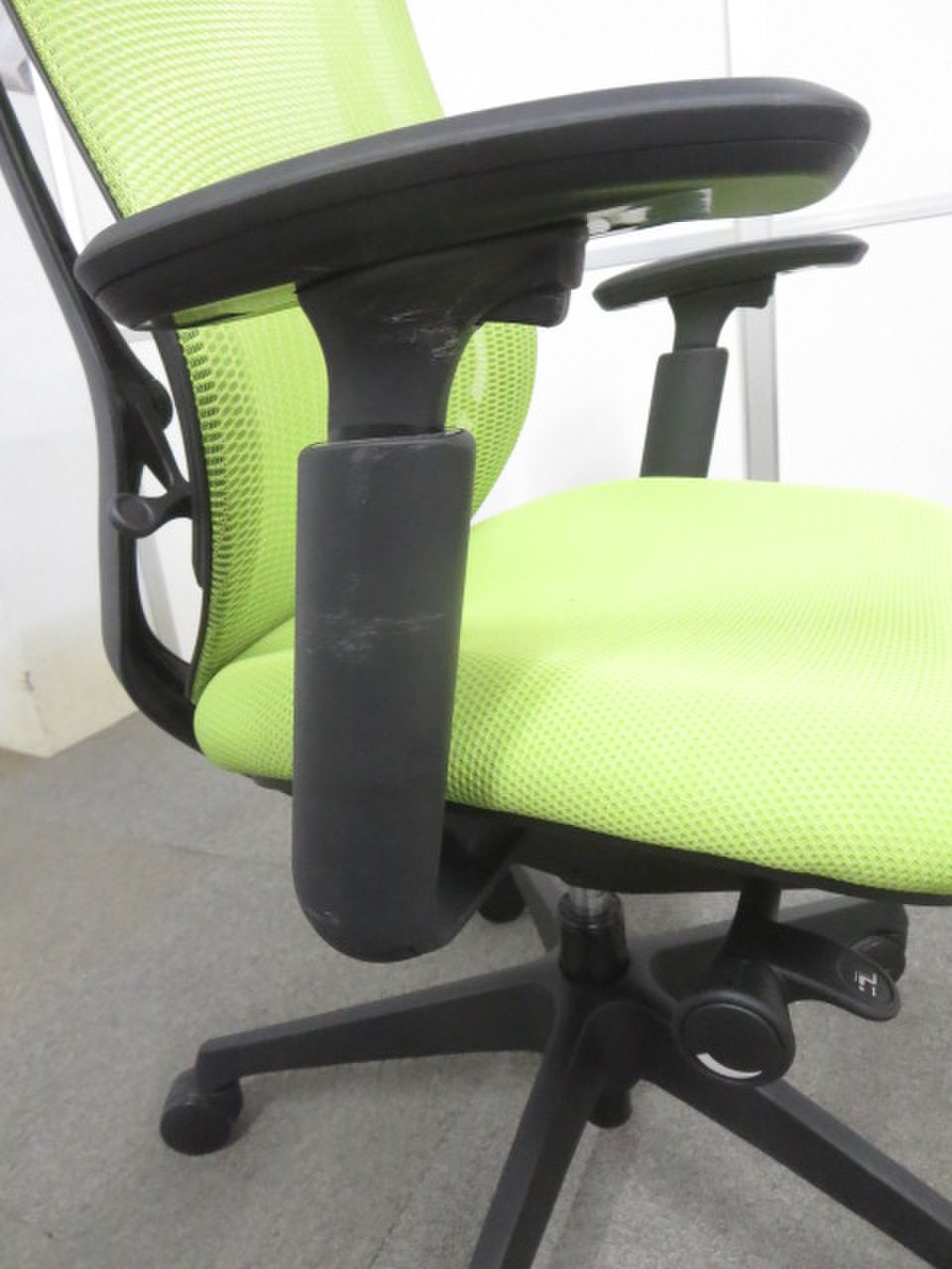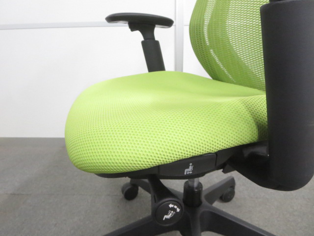 【前傾姿勢にも対応!】■シルフィーチェア ライムグリーン アジャストアーム付 ハンガー付 ブラックボディ- 川崎店