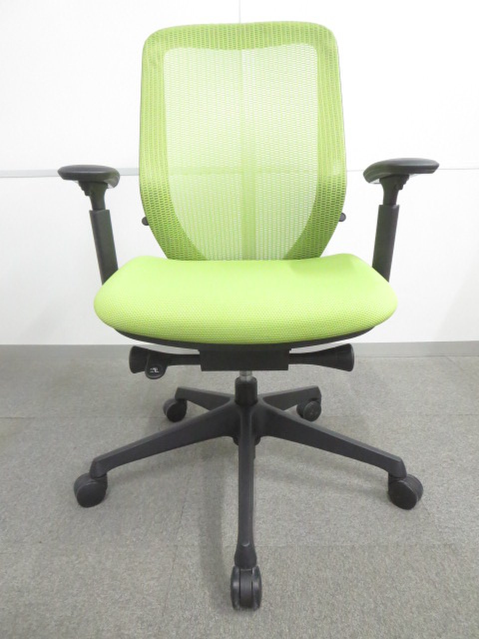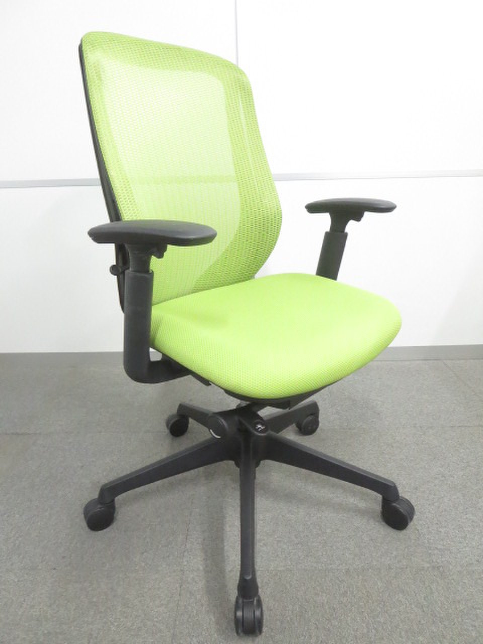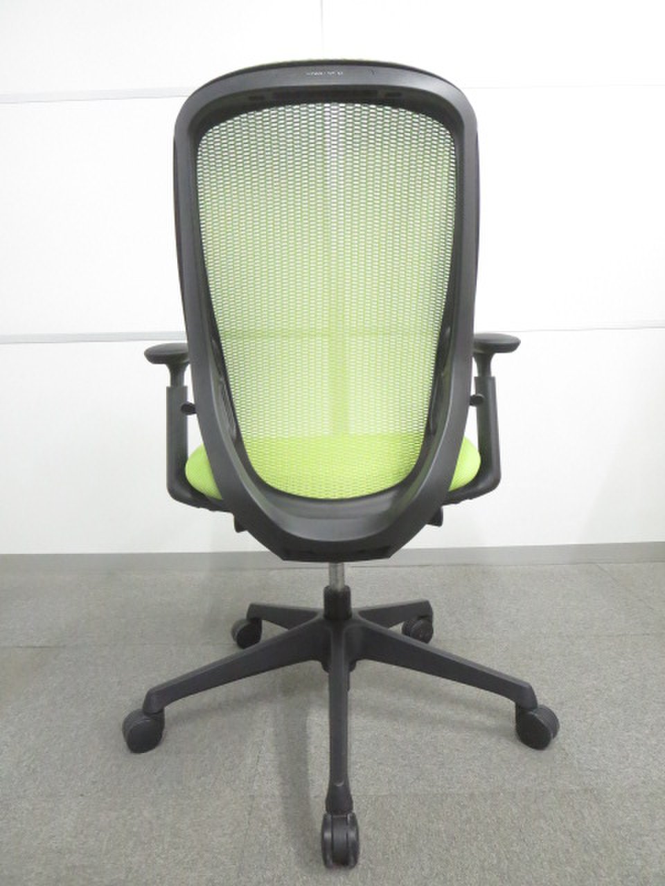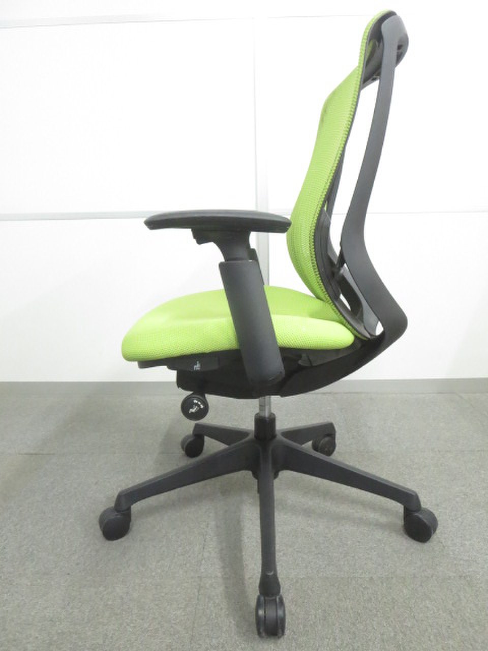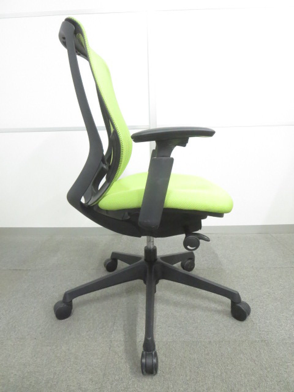 【前傾姿勢にも対応!】■シルフィーチェア ライムグリーン アジャストアーム付 ハンガー付 ブラックボディ- 川崎店