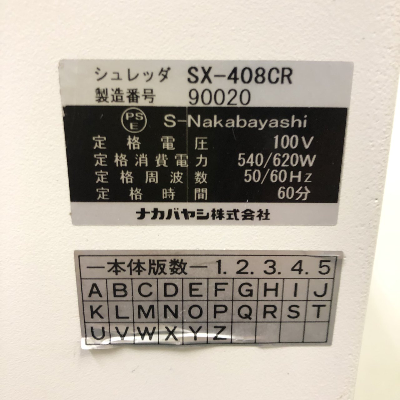 【中古】 スタンダードシュレッダー SX-408CR ナカバヤシ シュレッダー 325339