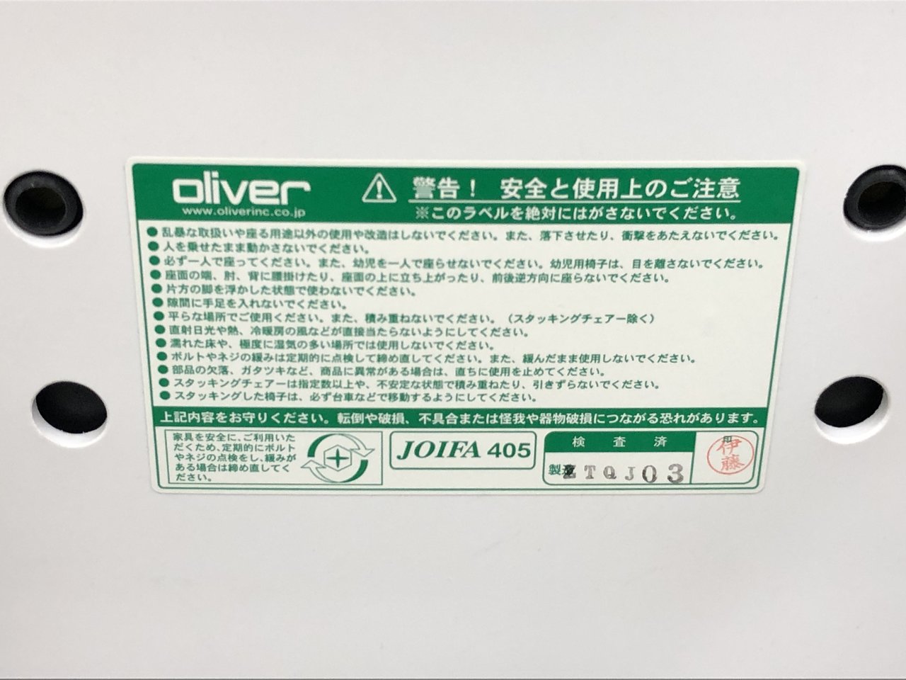- かなり強い濃い黄ばみ・変色が商品全体にある。(例、座面・背もたれ、脚部等にある。)