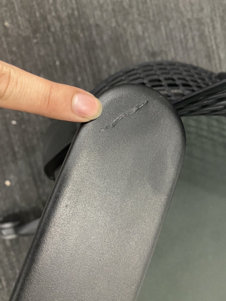 - 目立つ箇所あり傷・破れ・ほつれ・へたり・しわが多数または深い傷・破れ・ほつれ・へたり・しわが一部ある。※座面・背もたれ、シェル、脚部等にある。