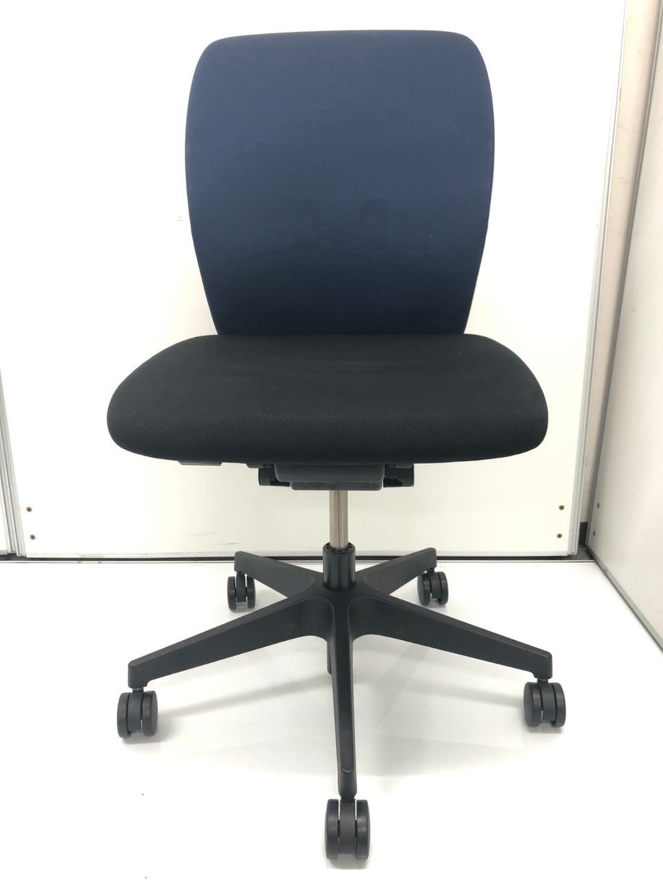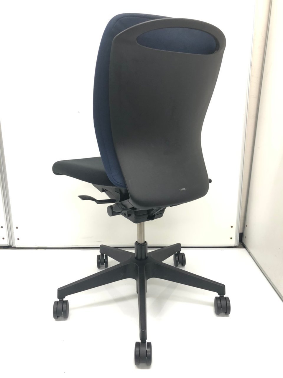 【座る人を選ばない、シンプルスタイルなオフィスの定番シリーズ!把手付きで汚れ対策&持ち運びラクラク!】 ■イトーキ(ITOKI)製 フルゴ(fulgo)チェア ローバック肘無し ■背面:ネイビーブルー/座面:ブラック【関西倉庫在庫】