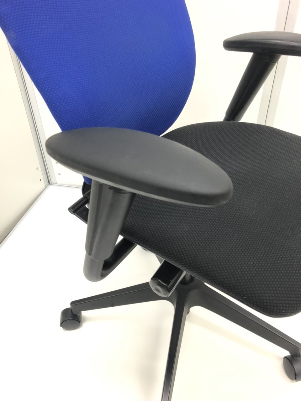 【6脚限定】【一人ひとりにマッチする座り心地!ミドルクラスの定番チェア!】■イトーキ(ITOKI)製 プラオ(PRAO)チェア 肘付き ハイバック ■可動肘(ソフトパッド) ■ランバーサポート付き ■ストロングブルー×ブラックシェル オフィスバスターズ 梅田本店