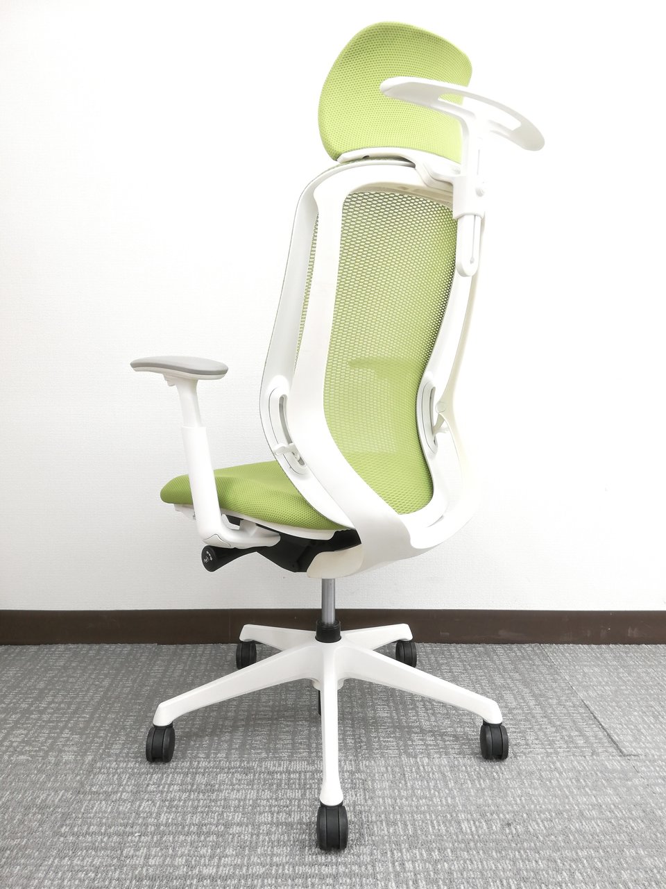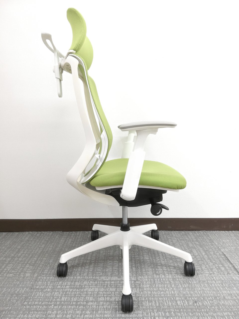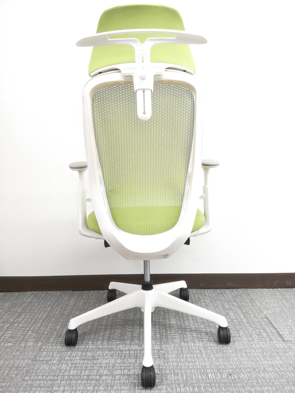 【2014年製】さわやかグリーンシルフィー(Sylphy)チェア※ヘッドレスト&可動肘掛け付仕様◆オカムラ製【RP】- 埼玉本店