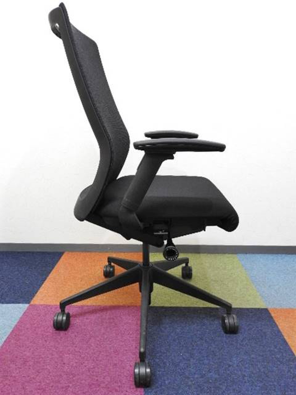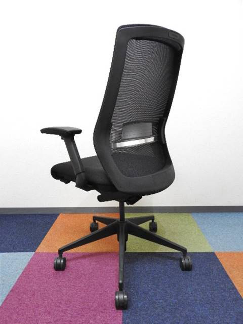 メッシュにランバーサポート付き。包み込むような背もたれで横を向く振り返るなど