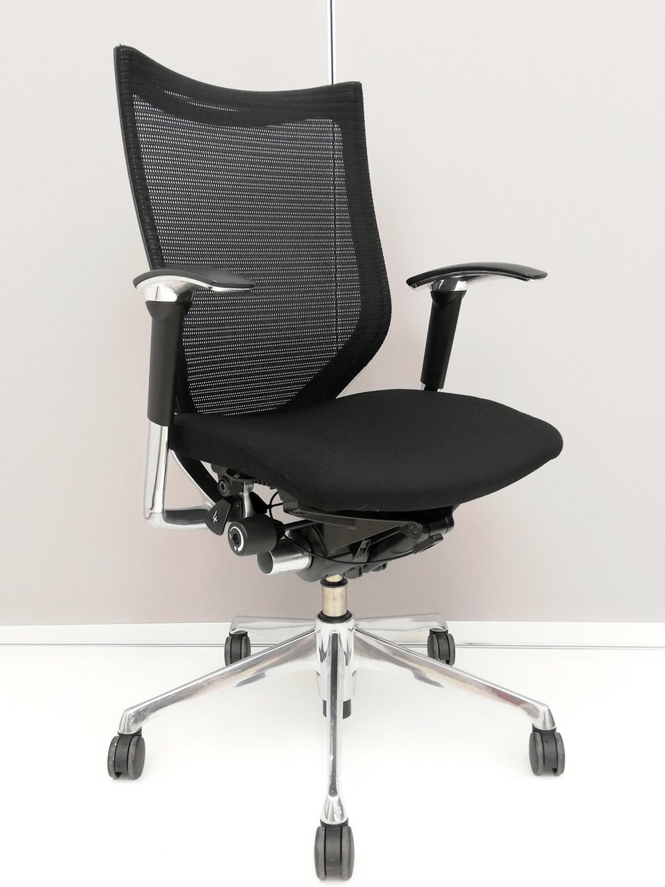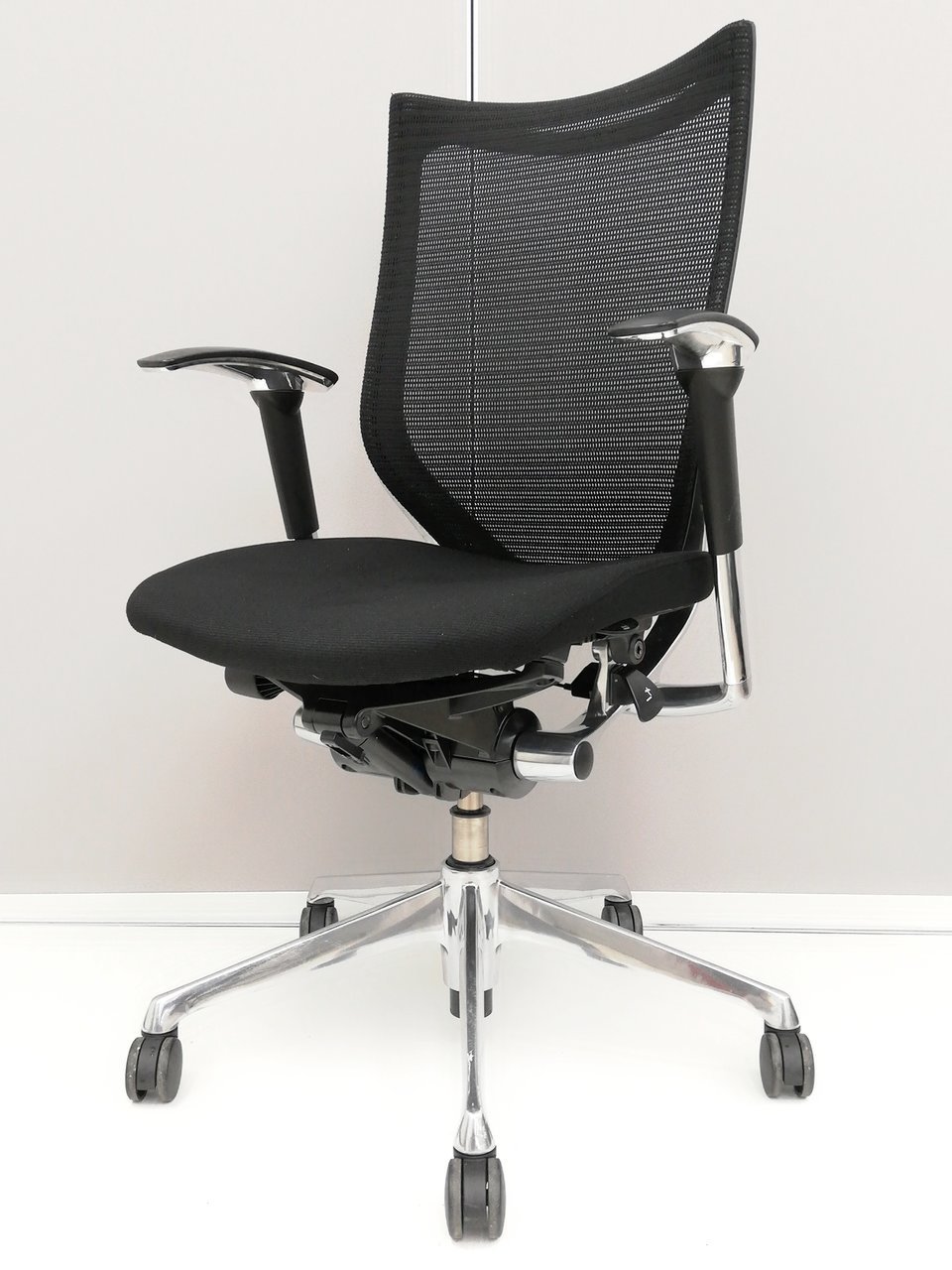 【長時間の着座でも疲れにくい!ベストなポジションが得られる先進設計!】■オカムラ バロンチェア 肘付 ブラック ハイバック シルバーフレーム ■良い椅子は腰を守る投資です!【Okamura Baron】
