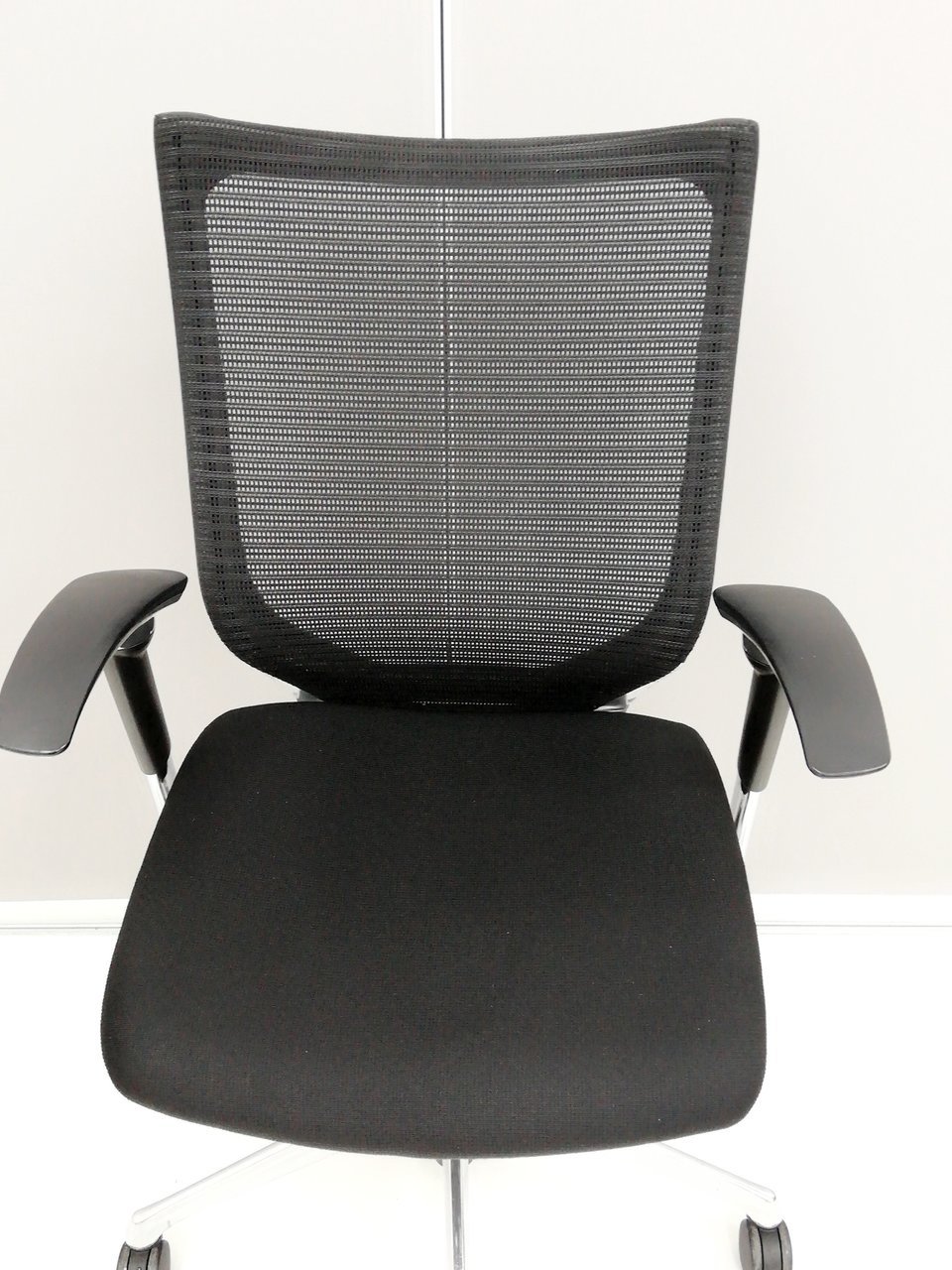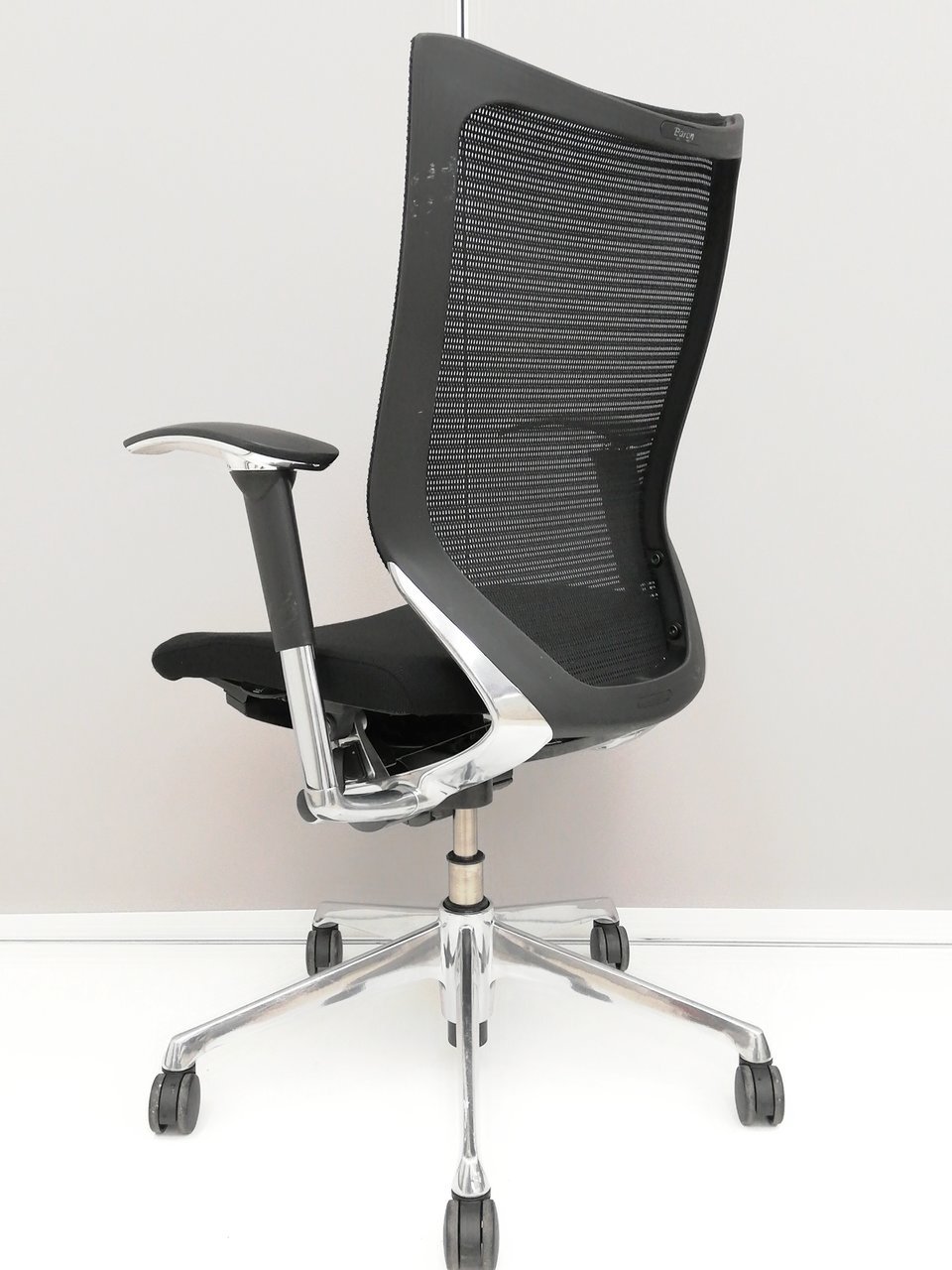 【硬めの座面が大人気!国産メッシュチェアの代表格!オフィスの執務室、会議室におすすめ!】■オカムラ(okamura)製 バロン(Baron)チェア 肘付き ハイバック 背面メッシュ ■固定肘 ■色:ブラック【IB】