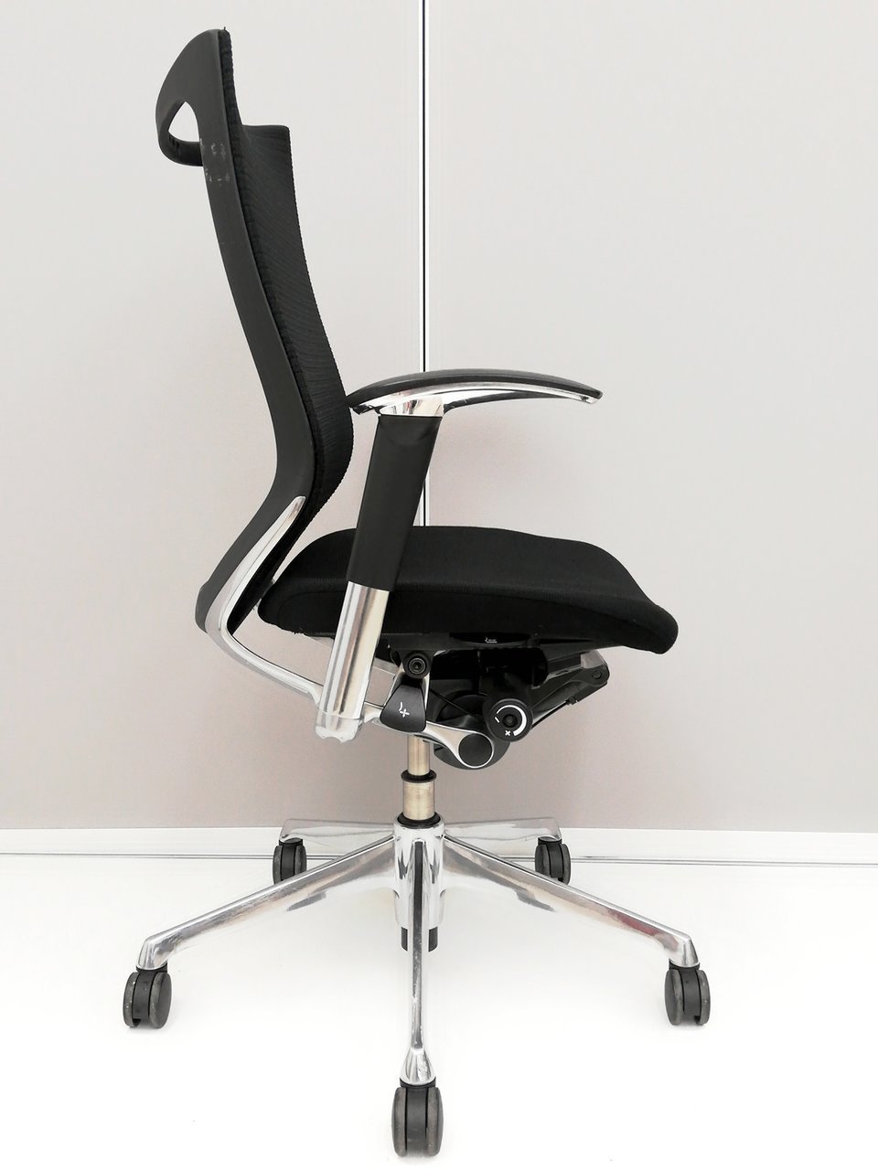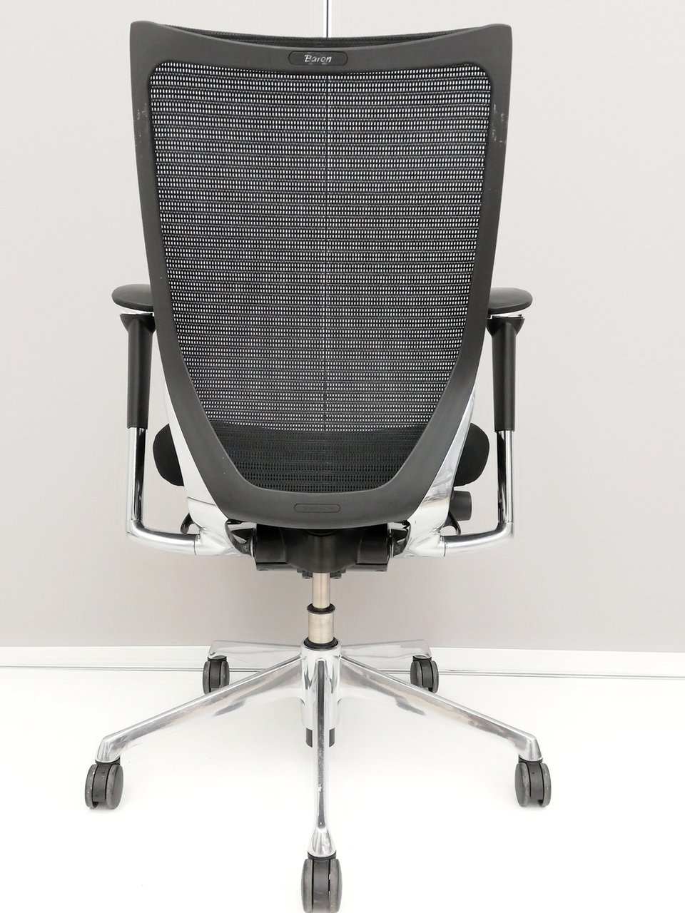 発売当時、既に人気を博していたオカムラの高級チェア、コンテッサから手元で座高調整ができるスマートオペレーション機能を取り除くなどしてリーズナブルにしたのがバロンです。その際に少しだけコンパクト化されました。そのことが、日本人の体格、日本のオフィス、家庭環境に適し、国内で多くのシェアを獲得する要因の一つになったのではないかと思います。