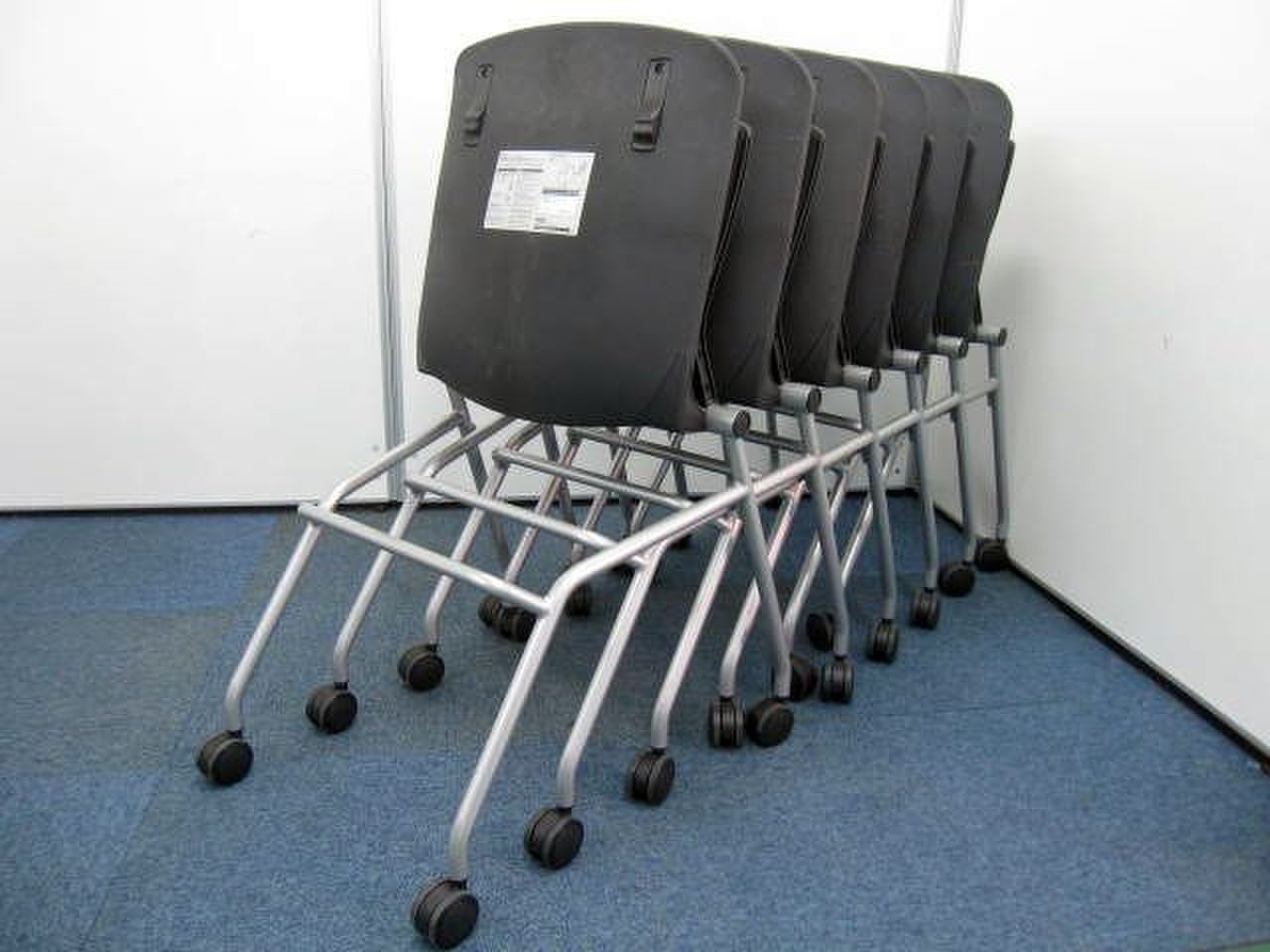 【会議・打ち合わせにおすすめです!】ネスティングチェア オカムラ グラータ ブラック 【使わないときは収納可能!】【AD】