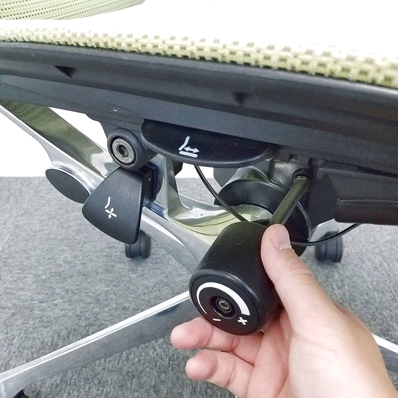 気に入っているのはリクライニング調整の自由さです。同じオカムラ社製の上位モデルや下位モデルも、角度が5段階程度の固定位置だったり、リクライニング強度も4段階だったりしますが、バロンチェアはどちらも無段階。つまり完全に好きな位置、好きな強度に調整することができます。