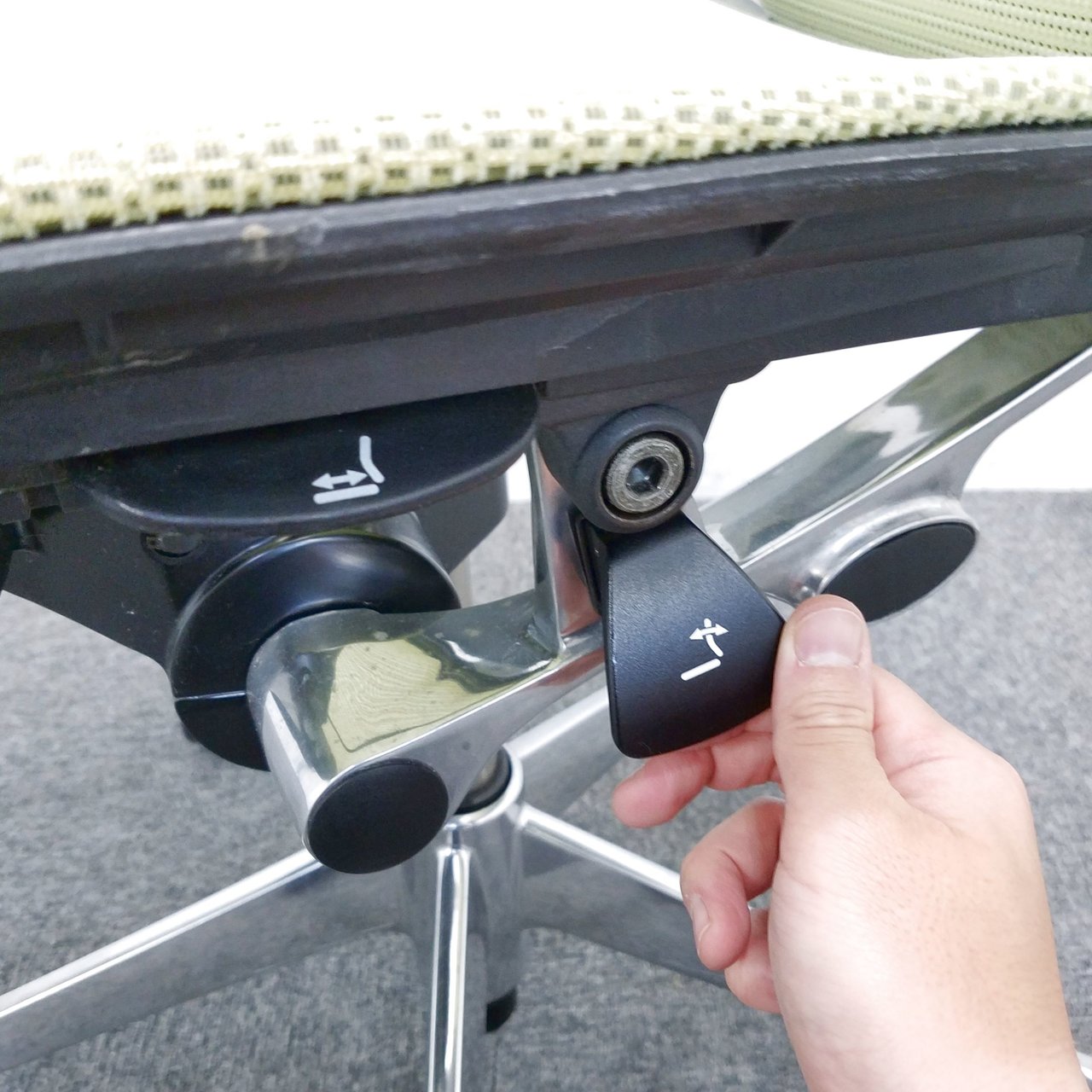 不具合:上下昇降レバーが故障しており離席すると座面が一番上に上がり、着座すると一番下に下がります。(min415mm ~ max515mm)