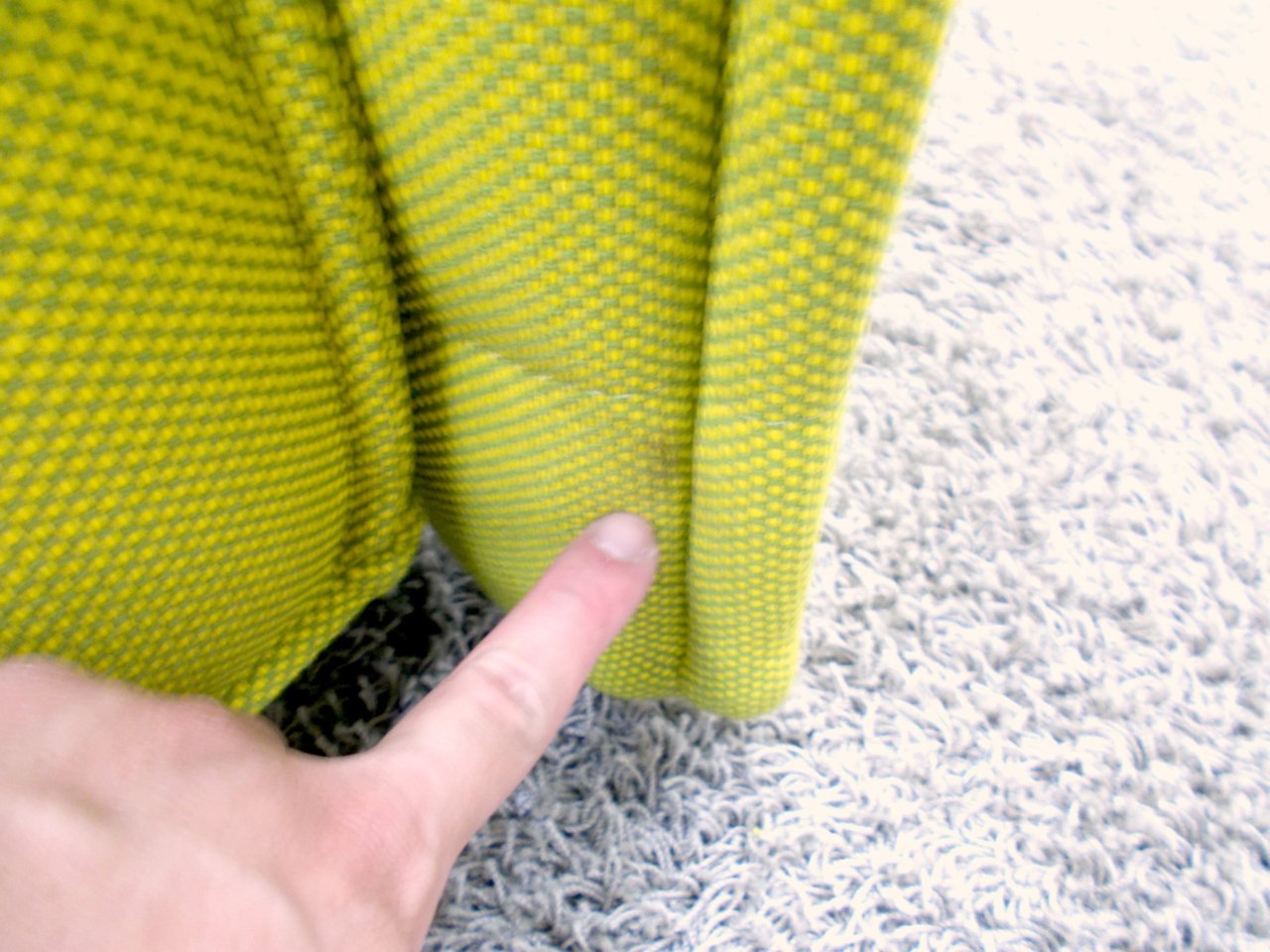 - あり黄ばみ・変色が広い範囲にうっすらある、または濃い黄ばみ・変色が一部ある。(例:三人用ソファ、二人用ソファ、一人用ソファの場合、背もたれ、肘かけ、座面等、 センターテーブルの場合、天板、脚にある。)
