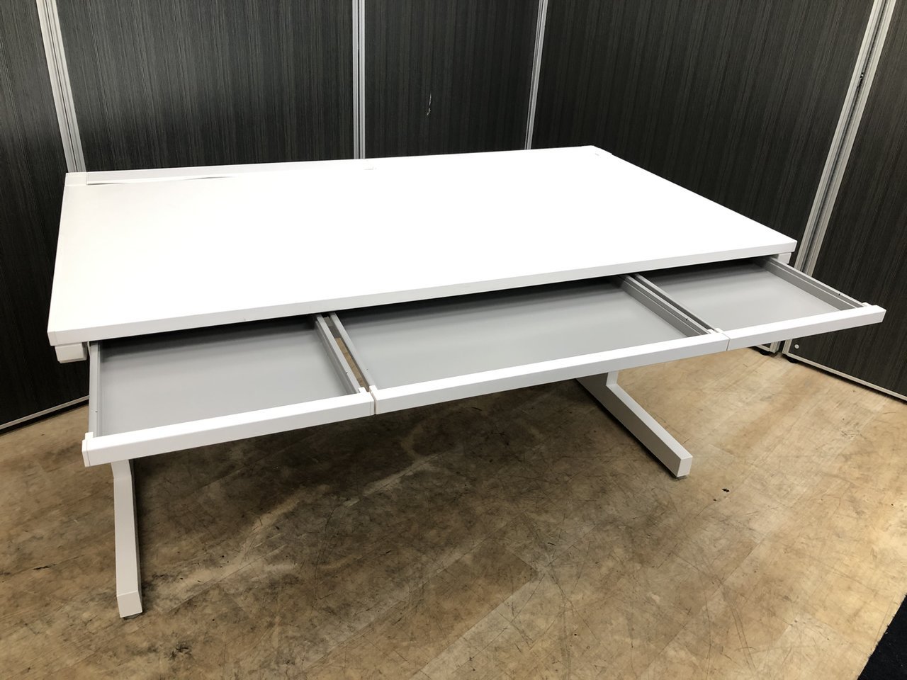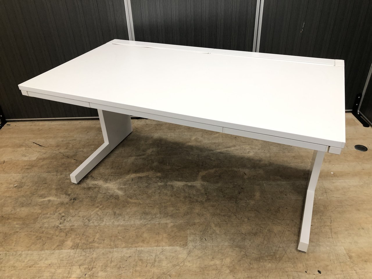 【T8】商品入替のため、残り1台限り】ウチダ製 スカエナ ホワイト 注意※薄型引出し無し Kタイプ/奥一直線配線タイプ W1400サイズ W1400平机!!