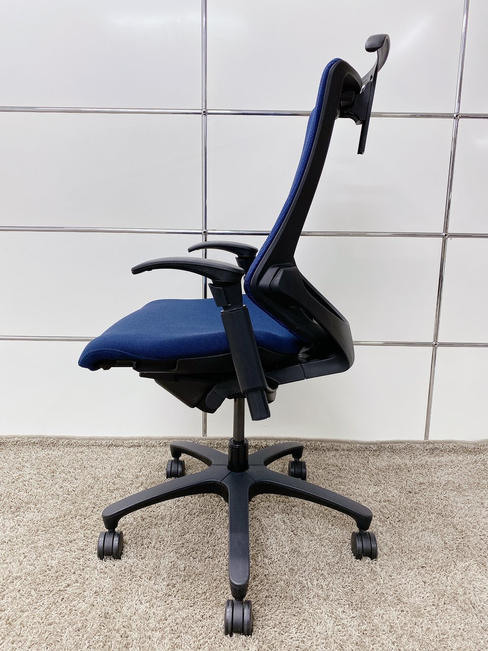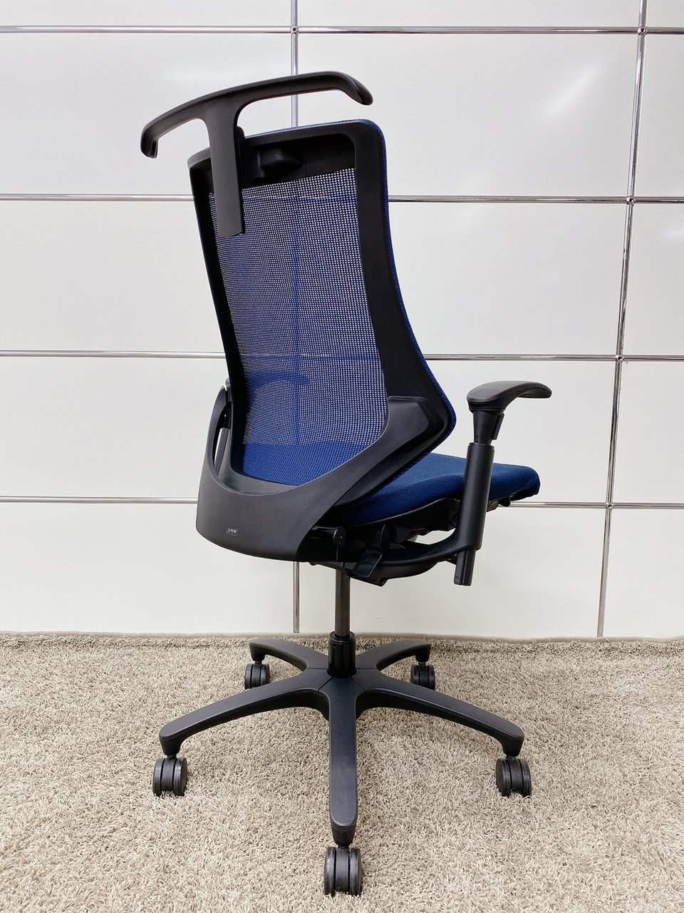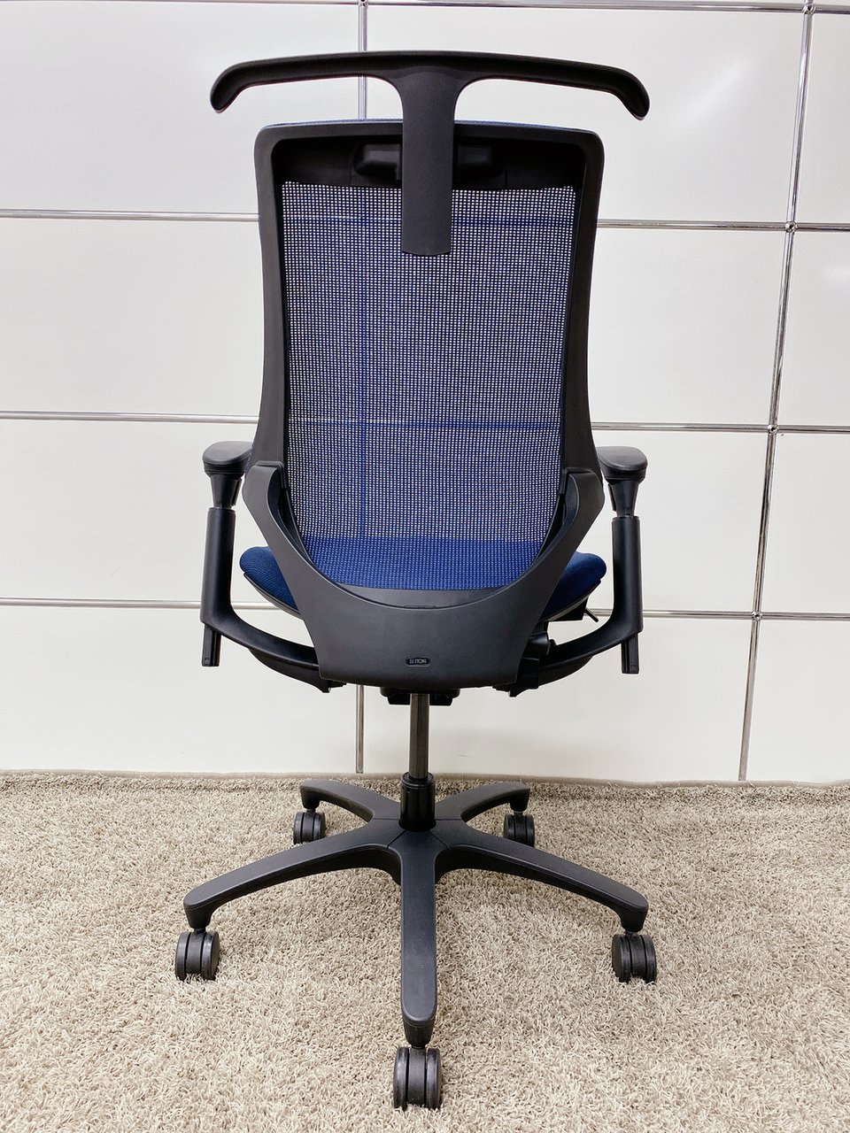 【包み込まれるフィット感!】 ■イトーキ製 エフチェア 肘付 ネイビーブルー ■デスクワークの疲労を軽減!