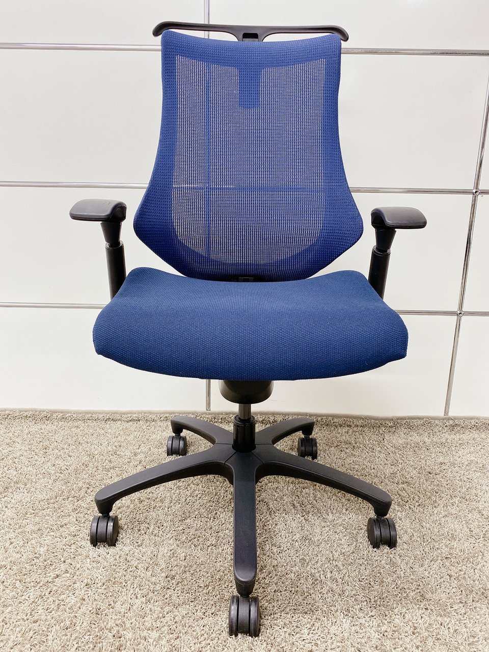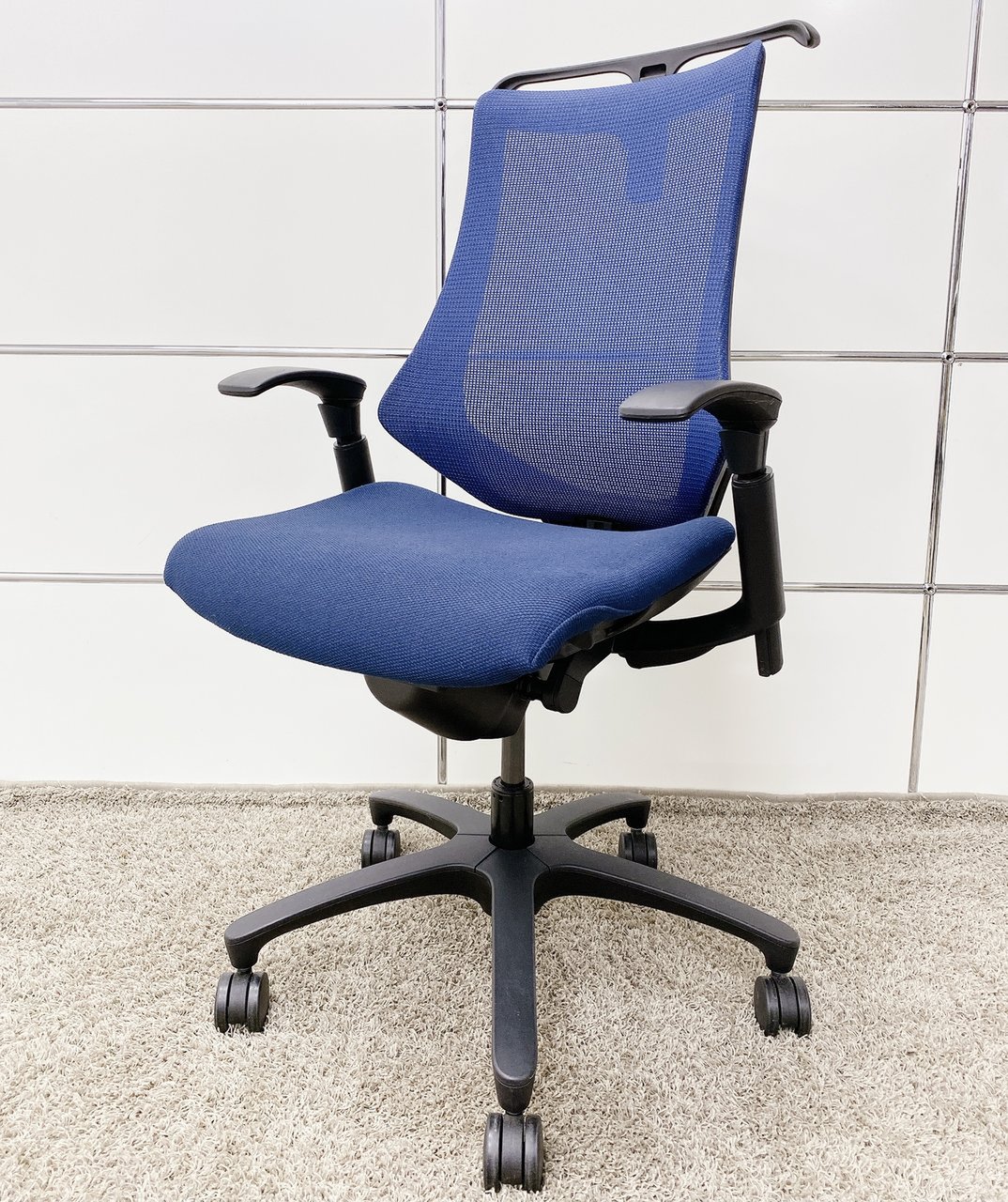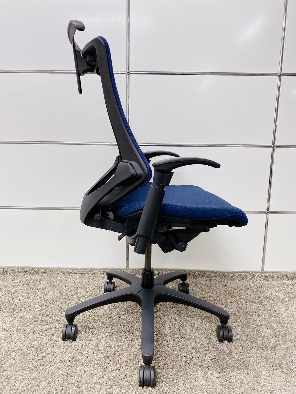 【包み込まれるフィット感!】 ■イトーキ製 エフチェア 肘付 ネイビーブルー ■デスクワークの疲労を軽減!