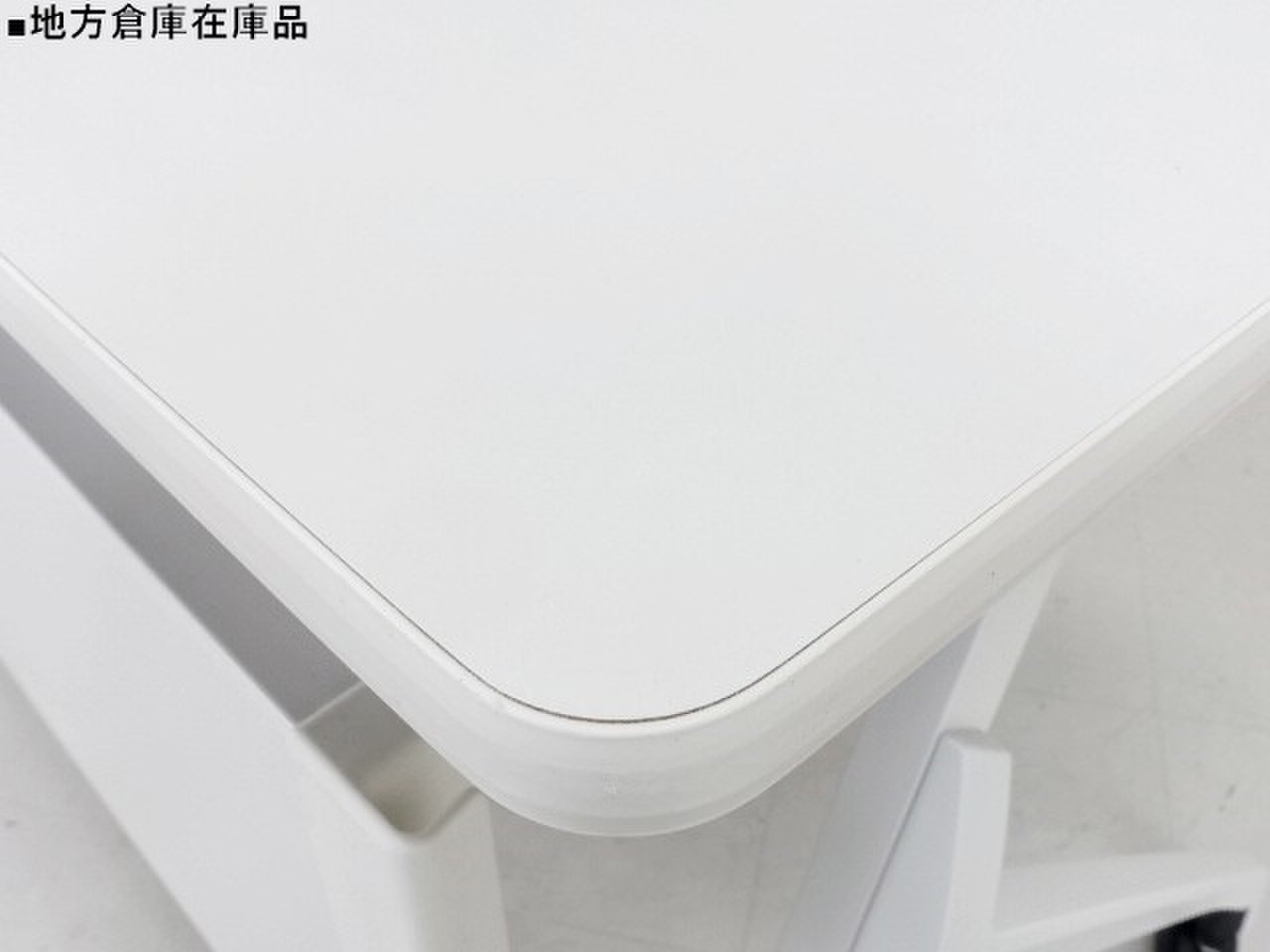 - 一部不具合あり天板歪み、アジャスター無し、キャスター使用不可ようなそのテーブルの本来の効用を果たすための機能以外の一部が使用不可な状態。(例、キャスターロッ ク機能使用不可、棚板無し等がある。)