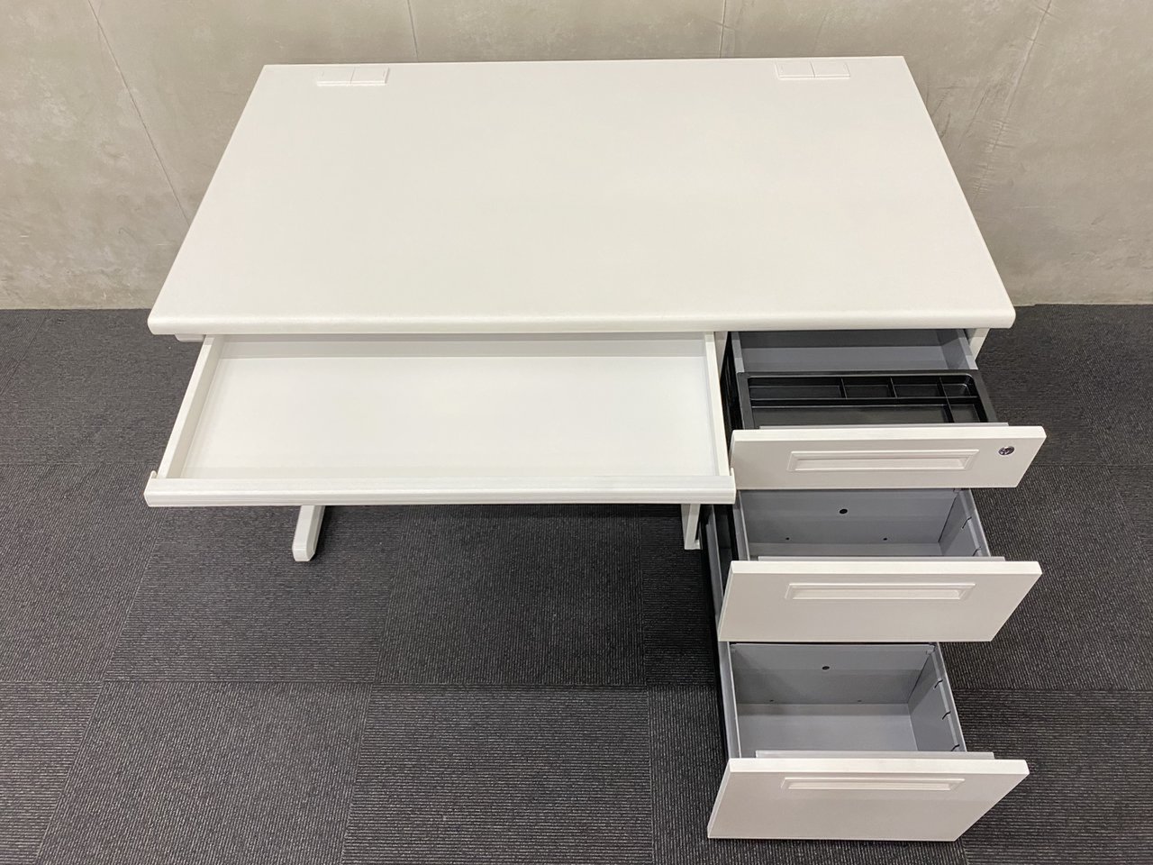 明るく清潔感のある空間を演出するホワイトカラーのW1200の片袖机です。