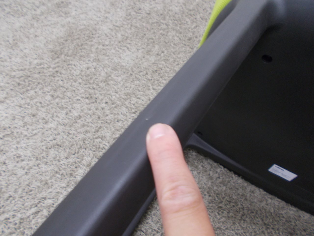 - かなり強い濃い黄ばみ・変色が商品全体にある。(例、座面・背もたれ、脚部等にある。)