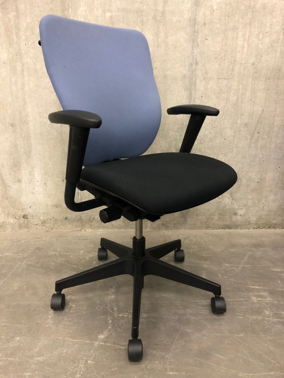 【一人ひとりにマッチする座り心地!ミドルクラスの定番チェア!】■イトーキ(ITOKI)製 プラオ(PRAO)チェア 肘付ハイバック ■ストロングブルー×ブラックシェル ■可動肘(ソフトパッド) ■ランバーサポート付き
