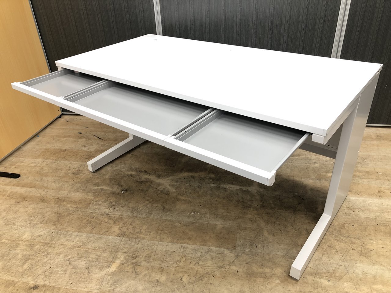 【T8】商品入替のため、残り1台限り】ウチダ製 スカエナ ホワイト 注意※薄型引出し無し Kタイプ/奥一直線配線タイプ W1400サイズ W1400平机!!