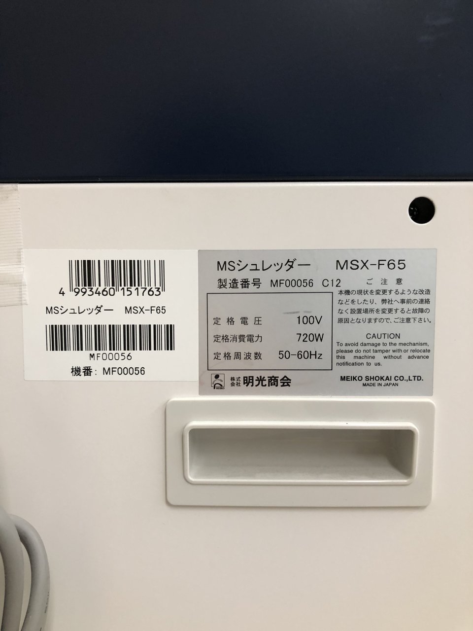 【1台入荷】明光商会 MSX-F65 パワークロスカット メディア細断 ホッチキス・クリップ対応【中古シュレッダー】【岐阜】【東京】【大阪】- 岐阜店