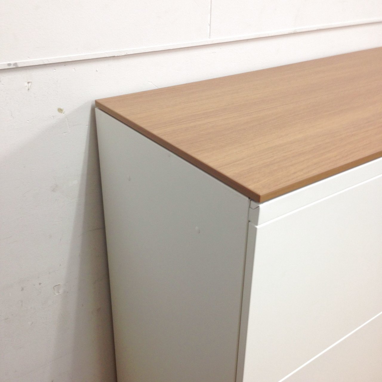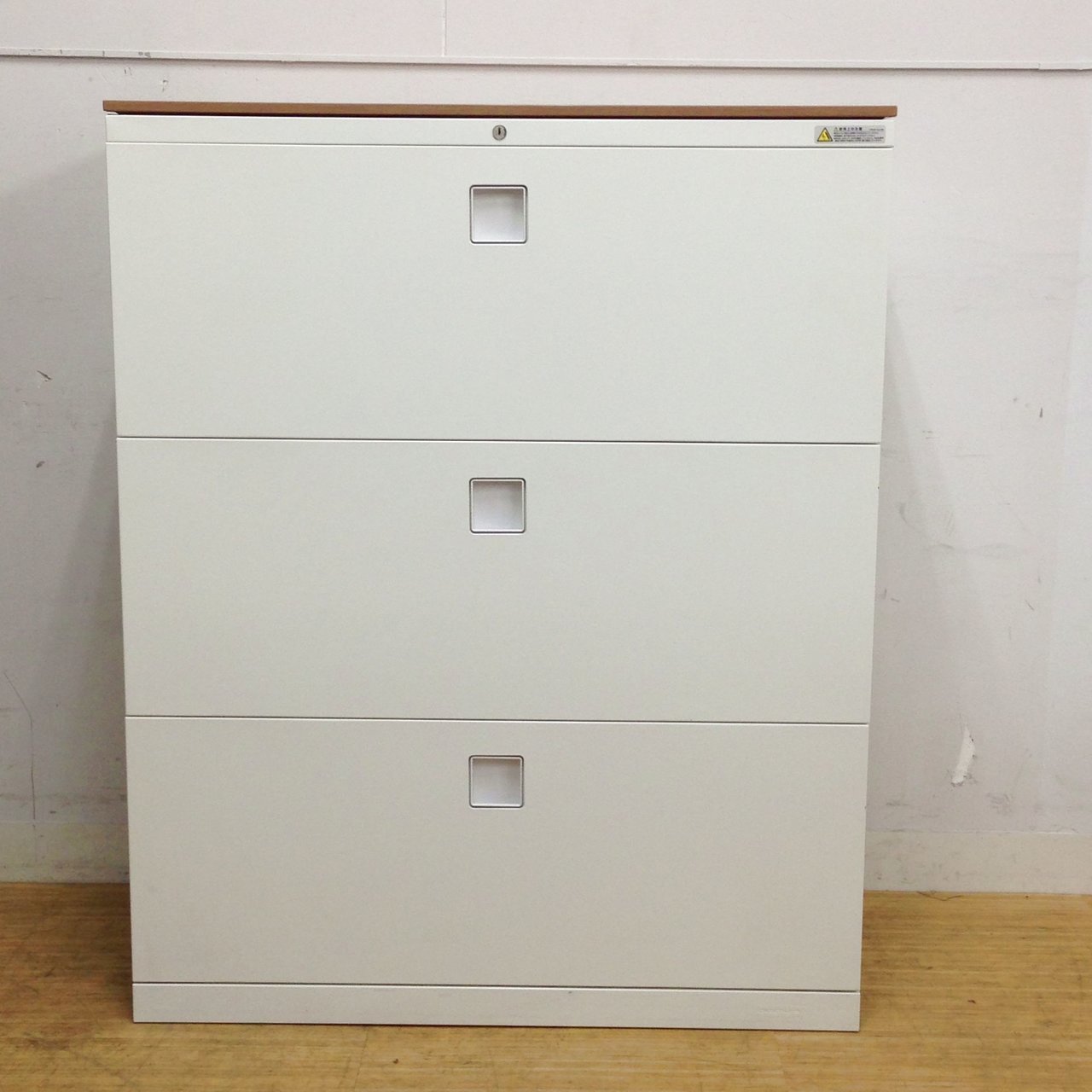 【ファイル収納にオススメ!高品質で使いやすい人気シリーズの3段ラテラル書庫!】■オカムラ(okamura)製 レクトラインシリーズ 3段ラテラル書庫 ローキャビネット H1100㎜ ■ホワイト ■シリンダー鍵 ■天板付き(天板:ホワイト) ※日焼け有