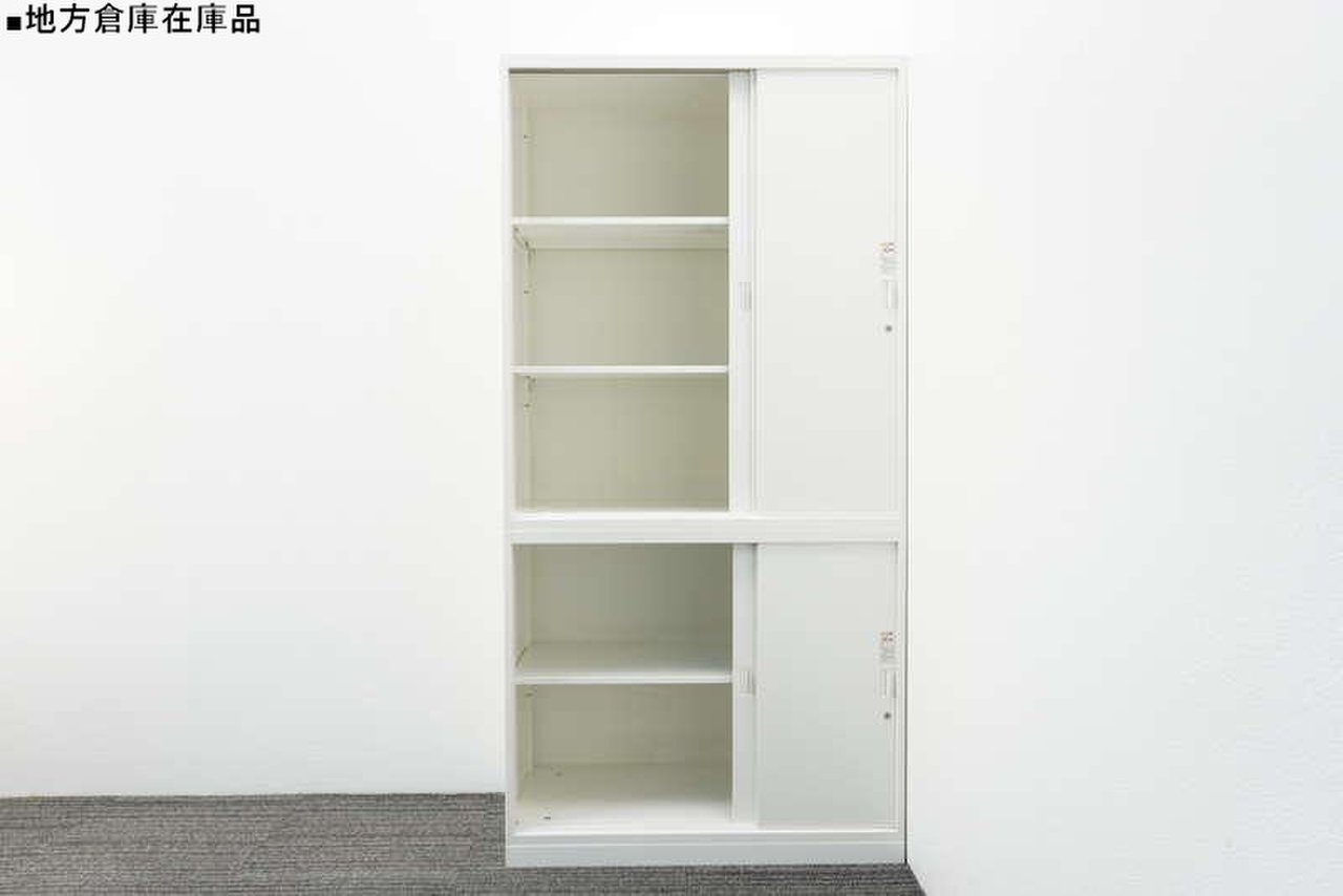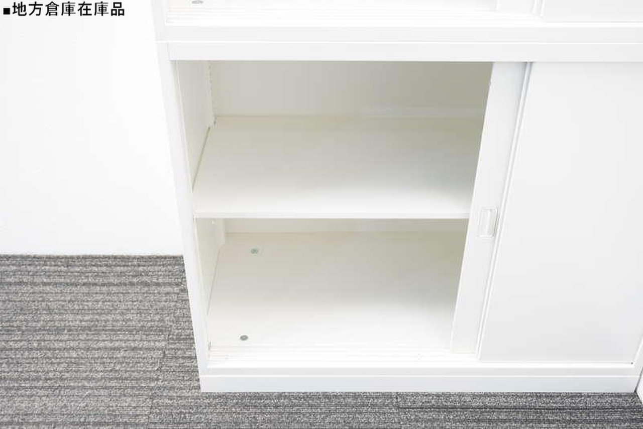 スライド式の扉+引き出しタイプの便利な書庫セットが入荷!使い勝手抜群のハイキャビネットが入荷! ■オカムラ/レクトライン/ホワイト 2枚引き戸+3段ラテラルキャビネット