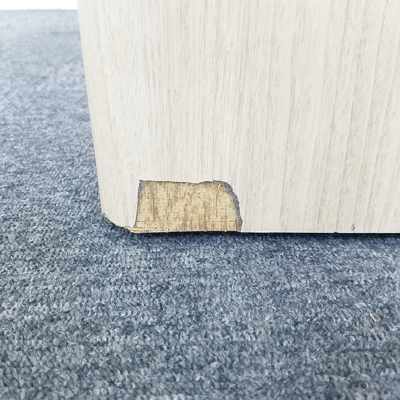 - 一部不具合あり天板歪み、引出開閉不可、アジャスター無し、施錠不可のようにそのカウンターの本来の効用を果たすための機能以外の一部が使用不可な状態。(例、引出が 開閉しづらい等がある。)